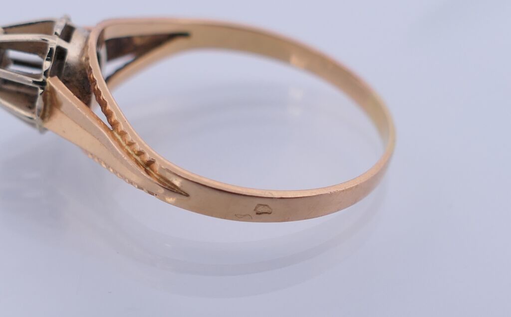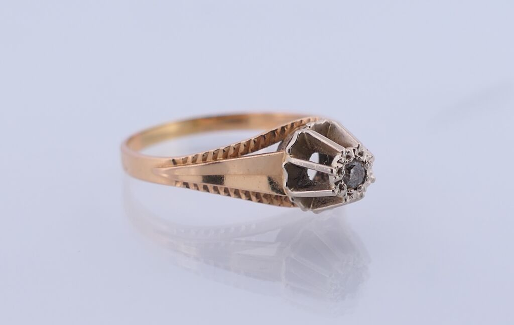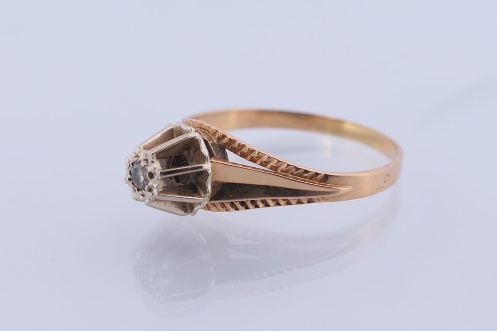 Ring in 750 yellow gold set with a diamond. TDD 62. PB. 3.2g