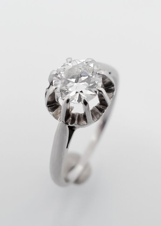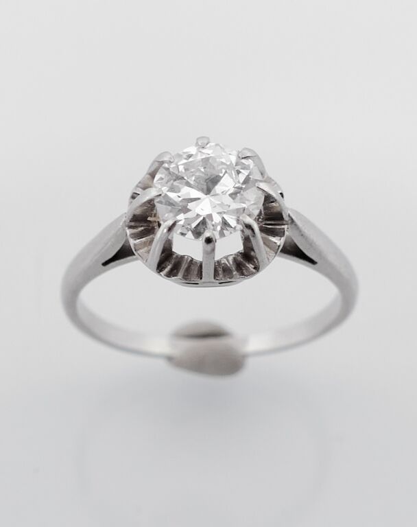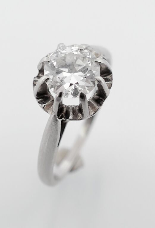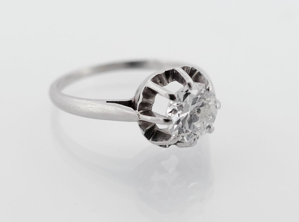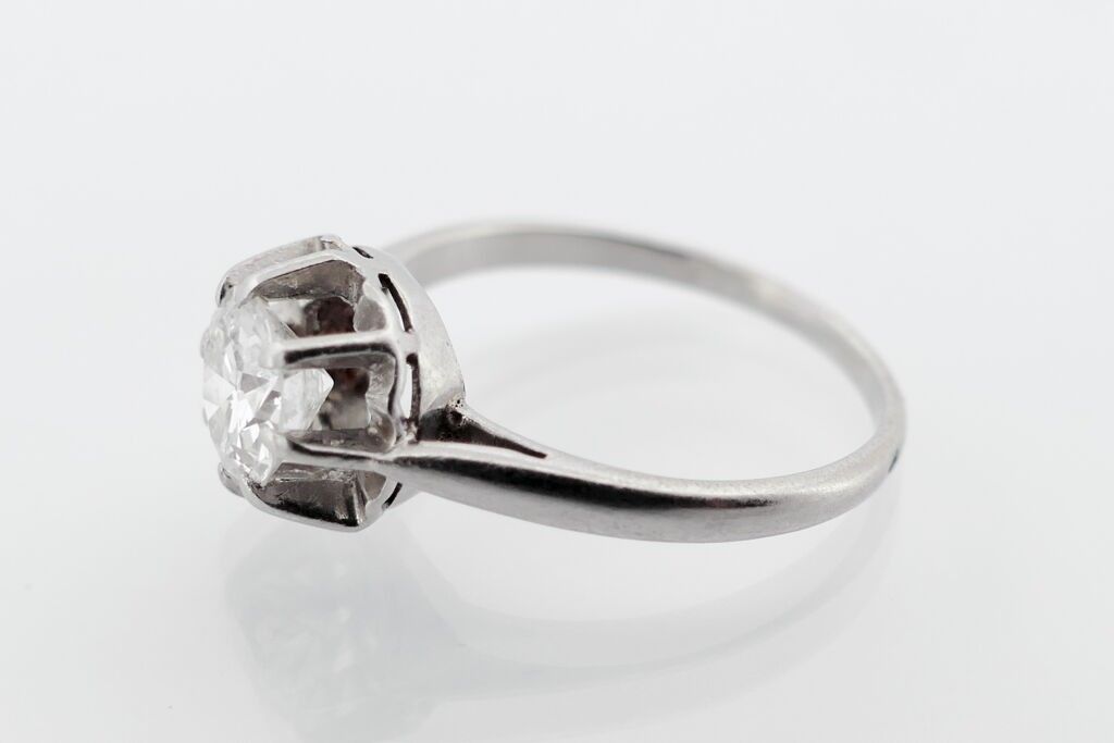 Platinum ring set with a half-cut diamond, approx. 0.9 carat TDD. 51. PB. 3.2g.