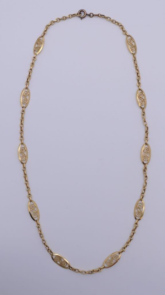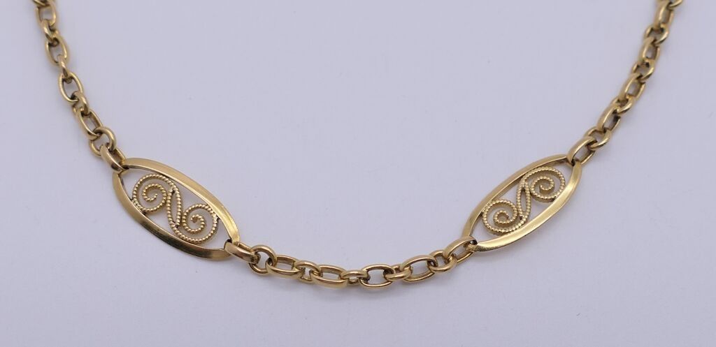 Necklace in 750 filigree yellow gold. Length 45 cm. Weight. 12.2g.