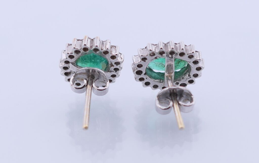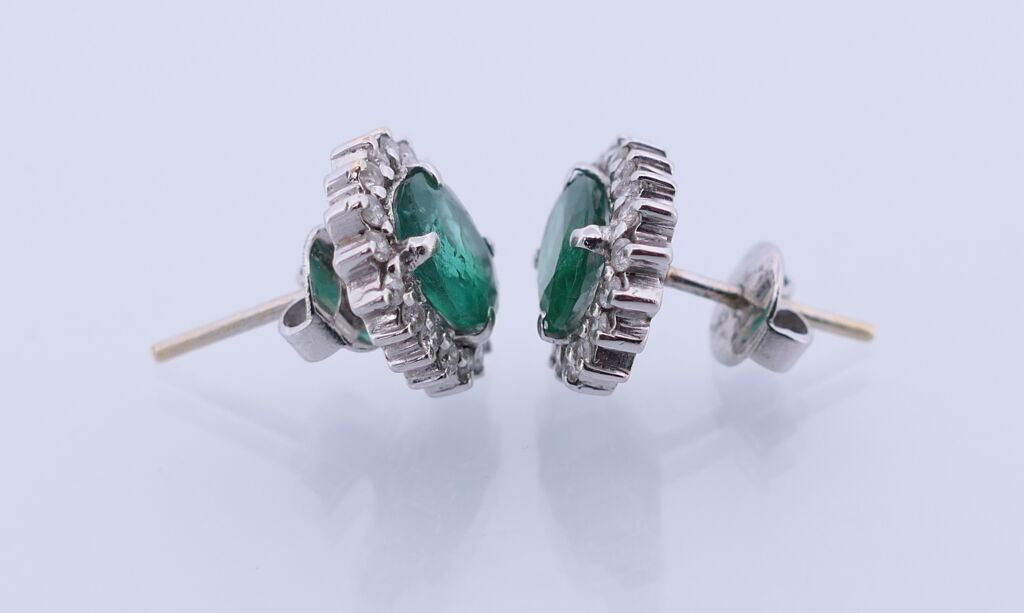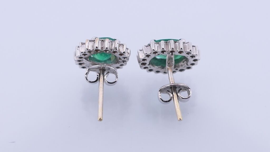 Pair of BO in white gold 750 set with two emeralds surrounde…