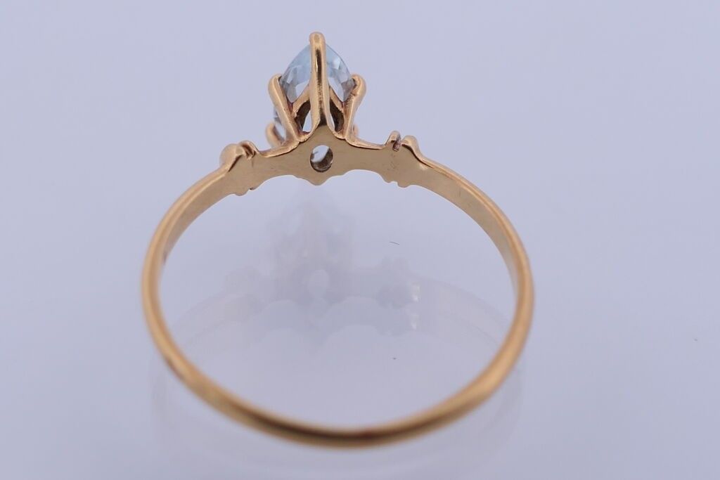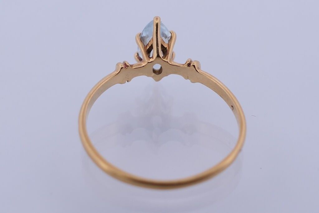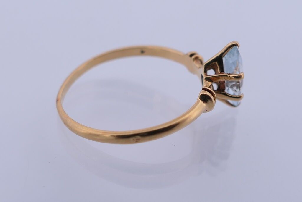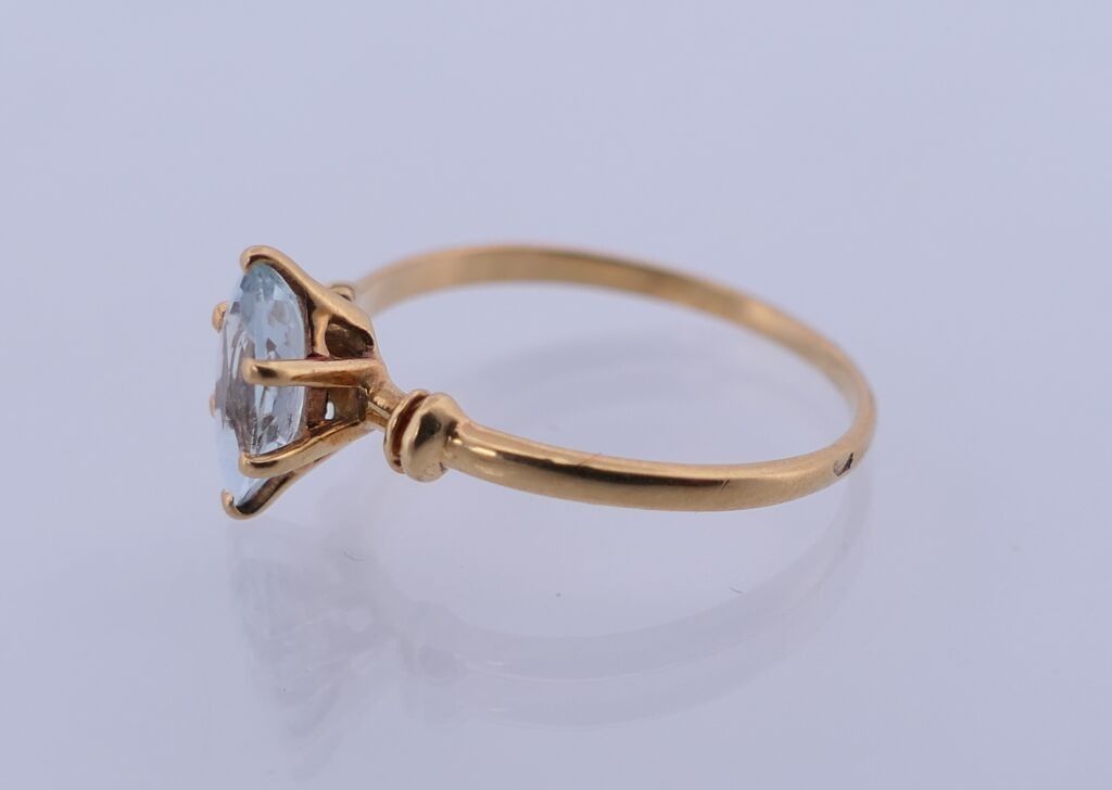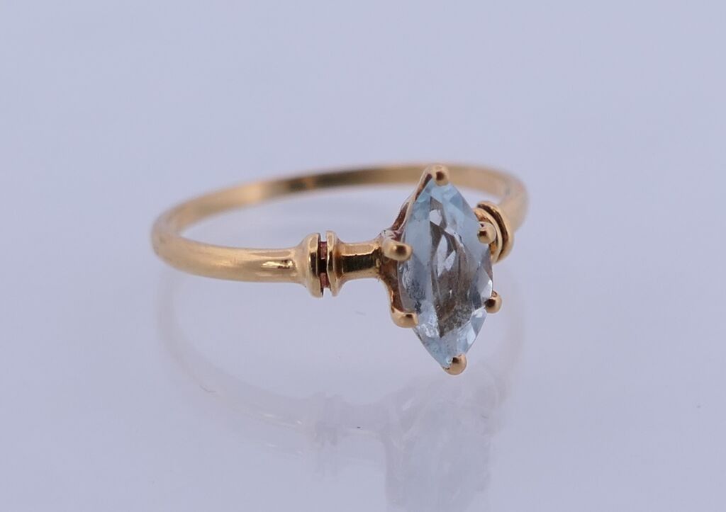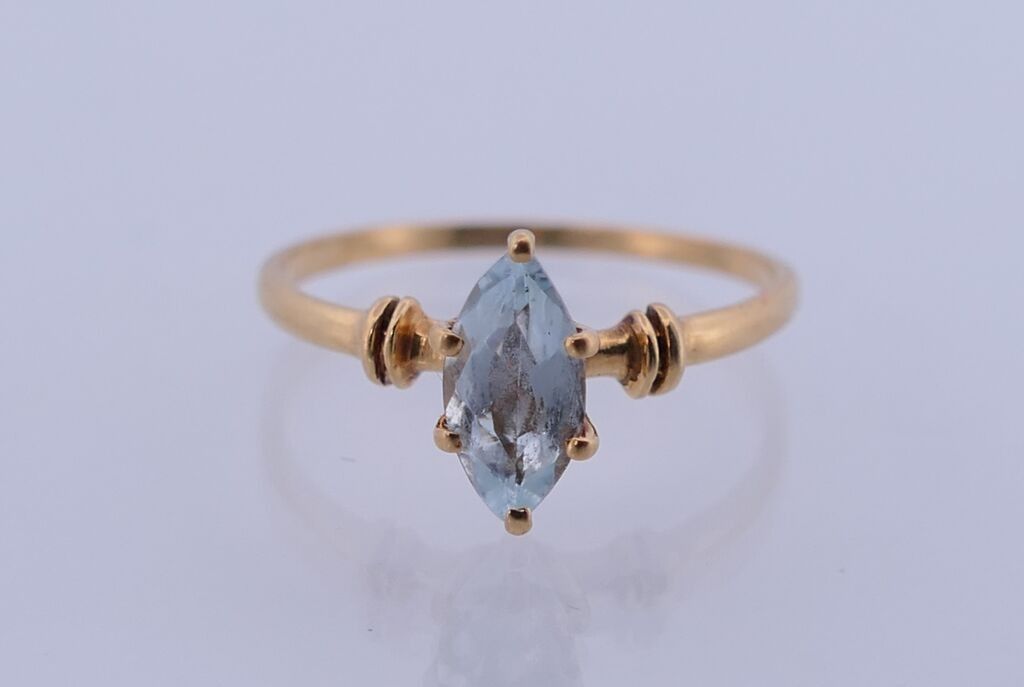 750 yellow gold ring set with a navette-cut aquamarine. TDD. 49. PB. 1.2g.