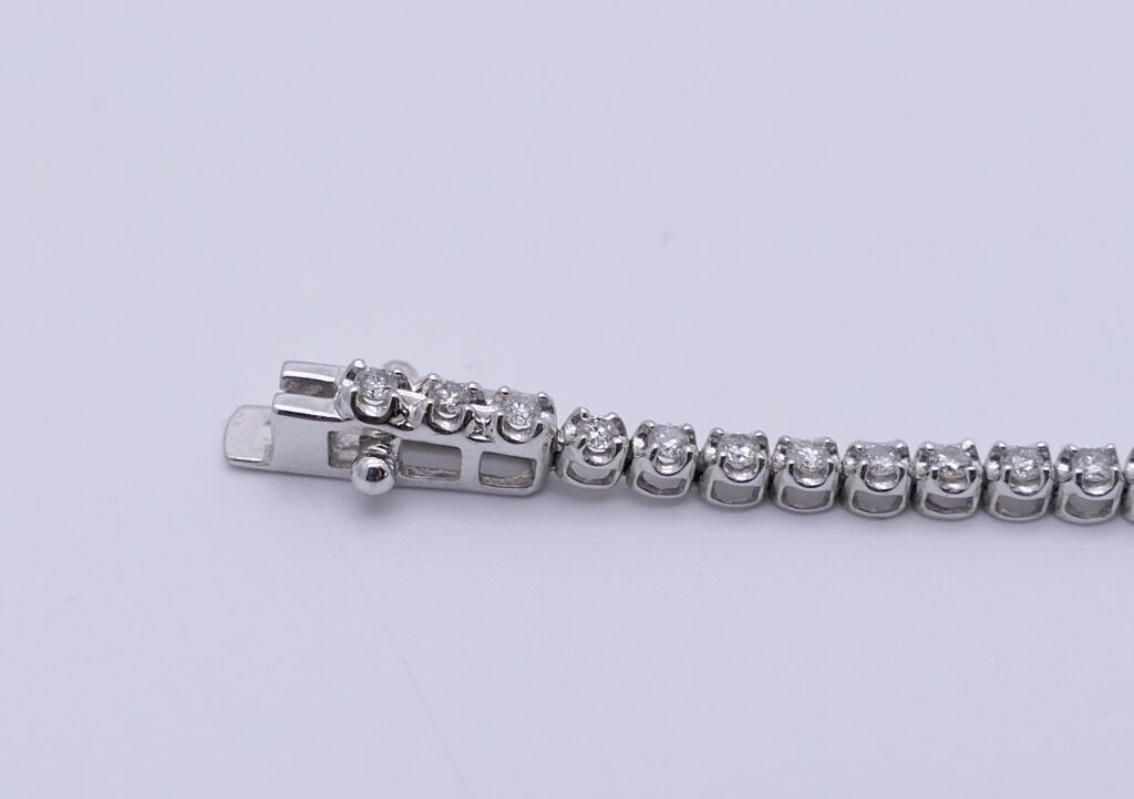 Diamond rivière bracelet in 375 white gold. L. 6.5 cm. PB. 4.3g.