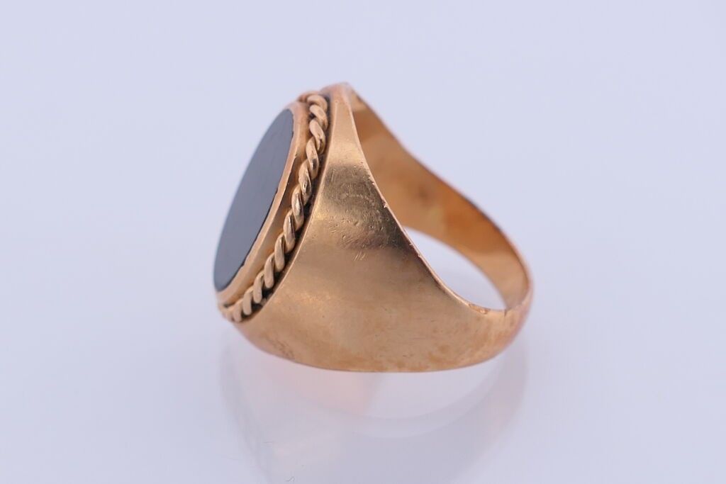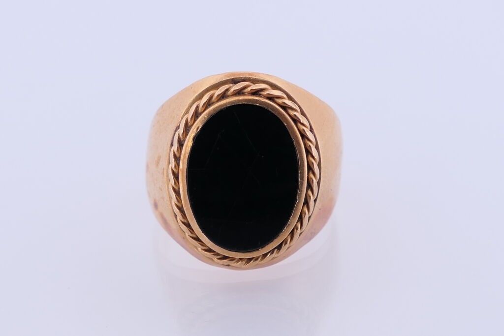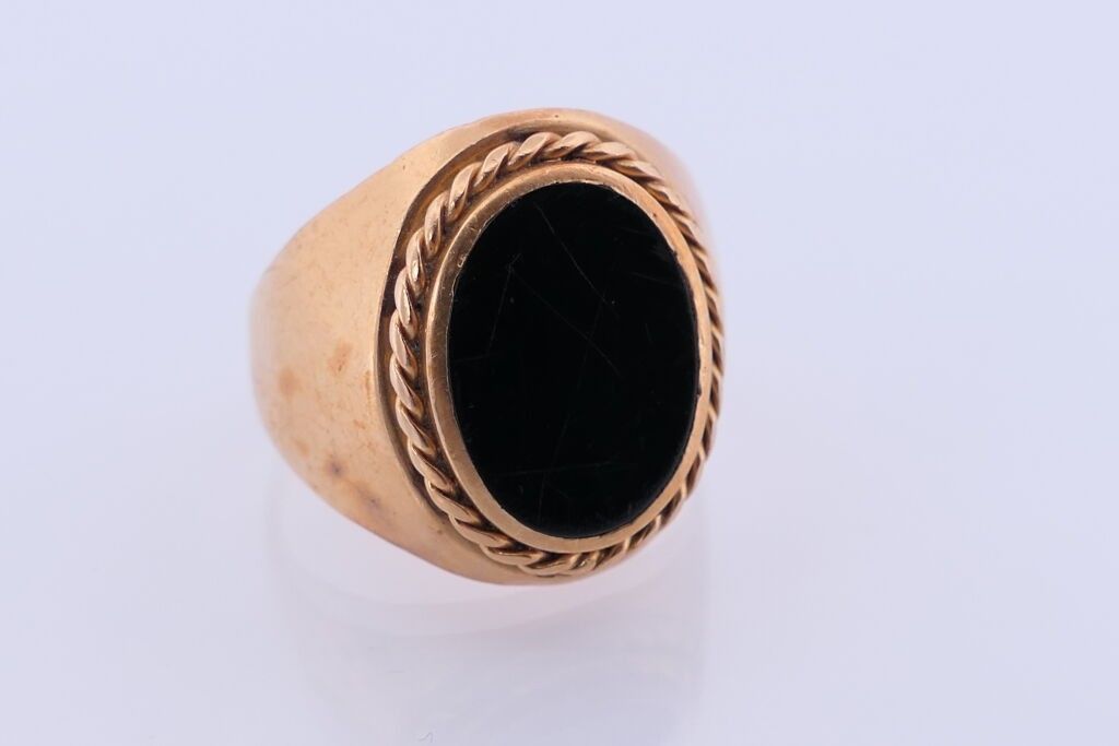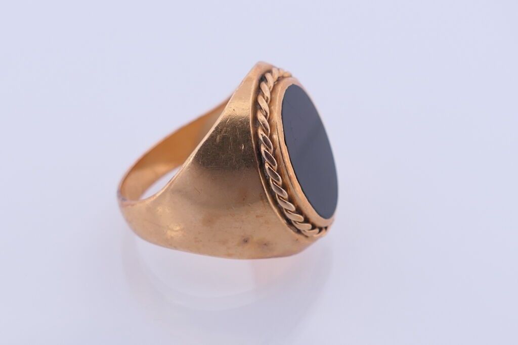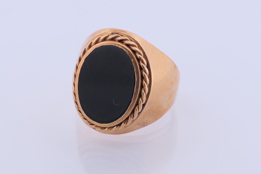 Chevalière in yellow gold 750 and onyx. TDD. 59. PB. 9.2g.