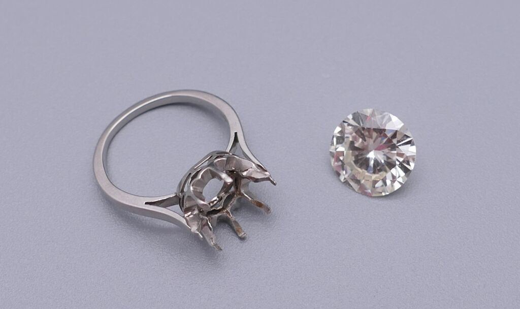 Loose modern-cut round diamond weighing approx. 3.2 carat. Mounting attached.