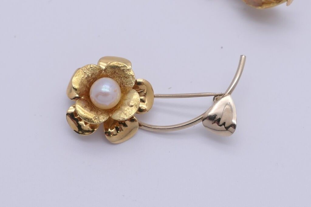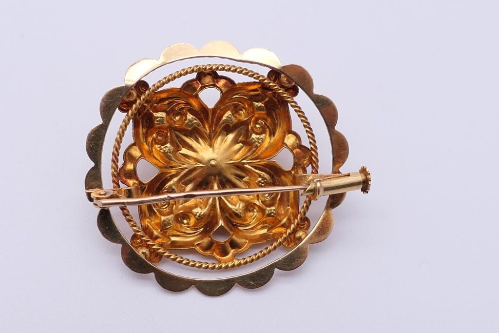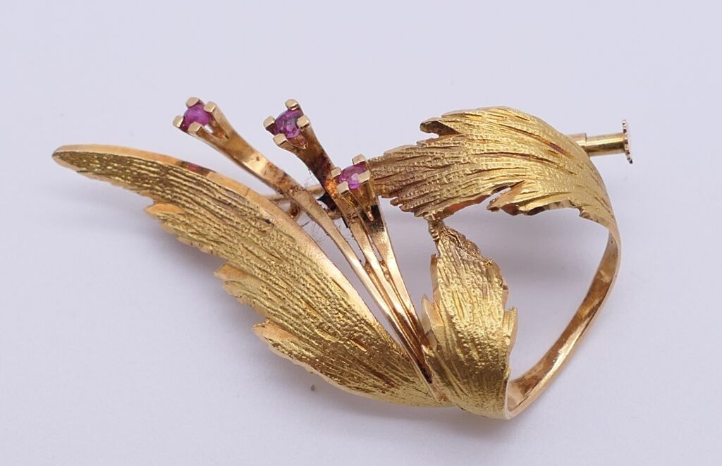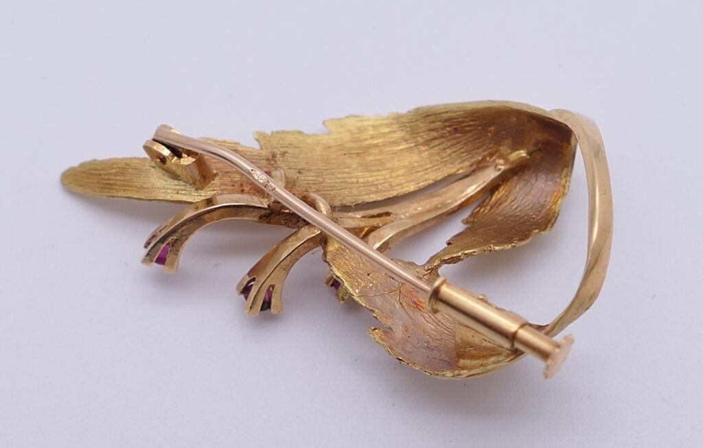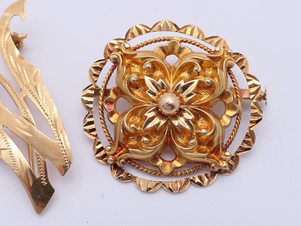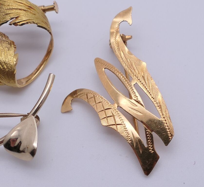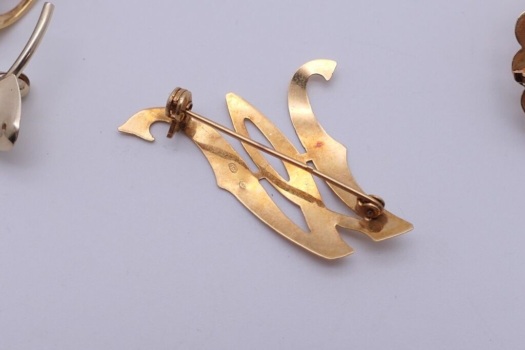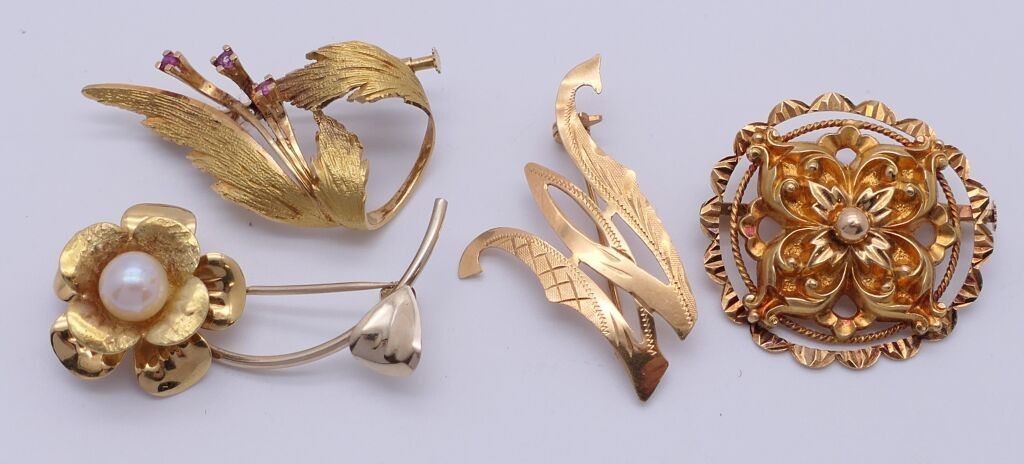 Set of 4 brooches in yellow gold 750. PB. 15g.