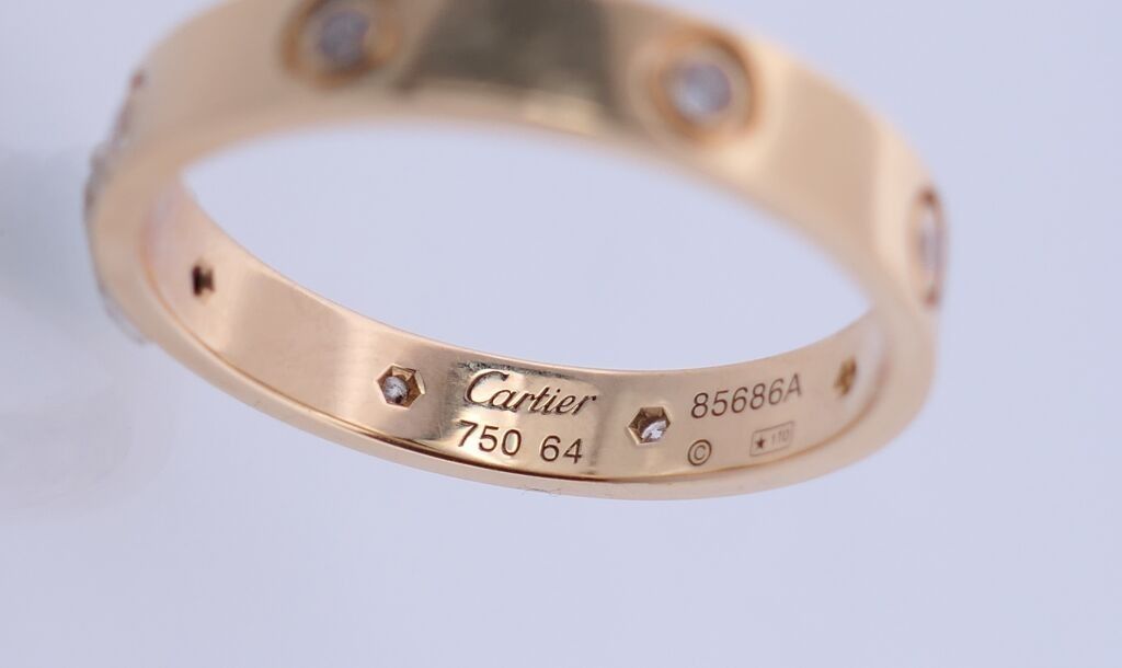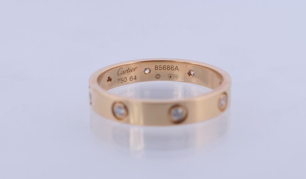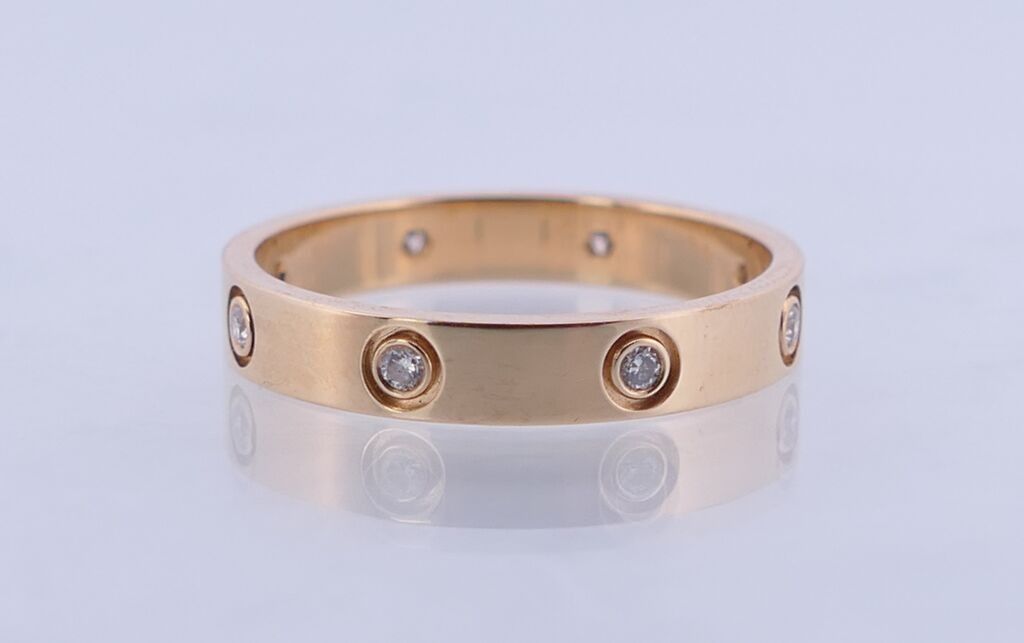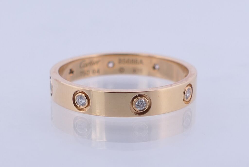 Premium Cartier. Love" diamond ring in 750 yellow gold set with 8 di…