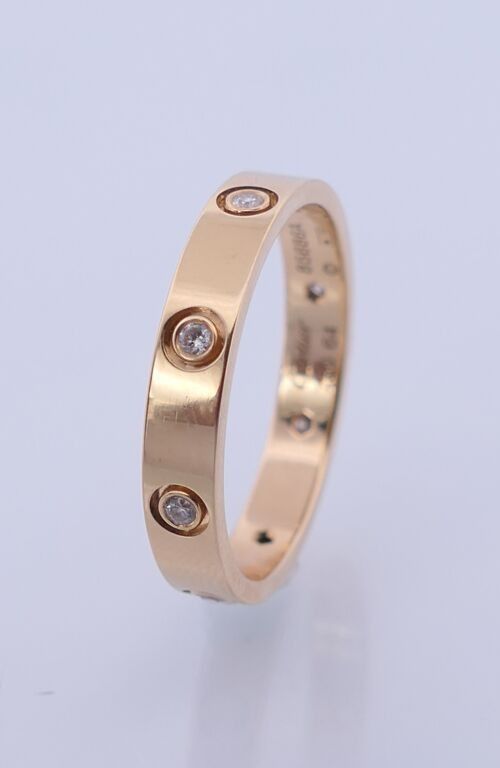 Cartier. Love" diamond ring in 750 yellow gold set with 8 diamonds. Signed and numbered. B.P.: 4.2g. TDD: 64. With box.