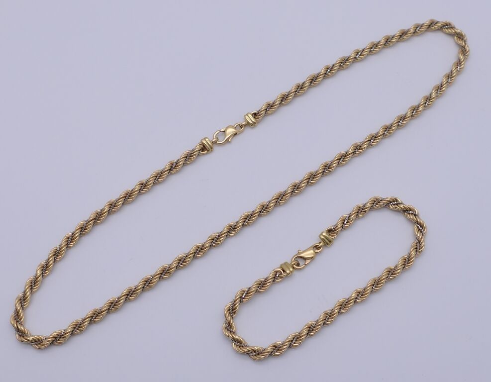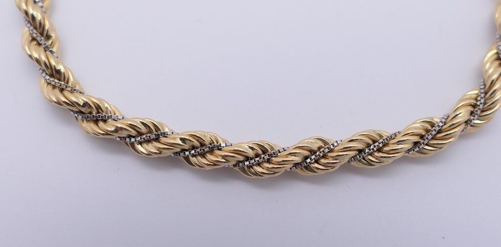 Two-tone twisted 750 gold set. Weight. 30.2g.