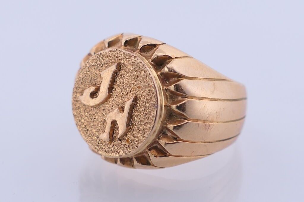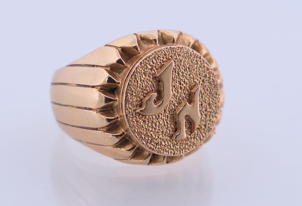 Chevalière in yellow gold 750. numbered J.N. TDD. 56. weight. 20.2g.