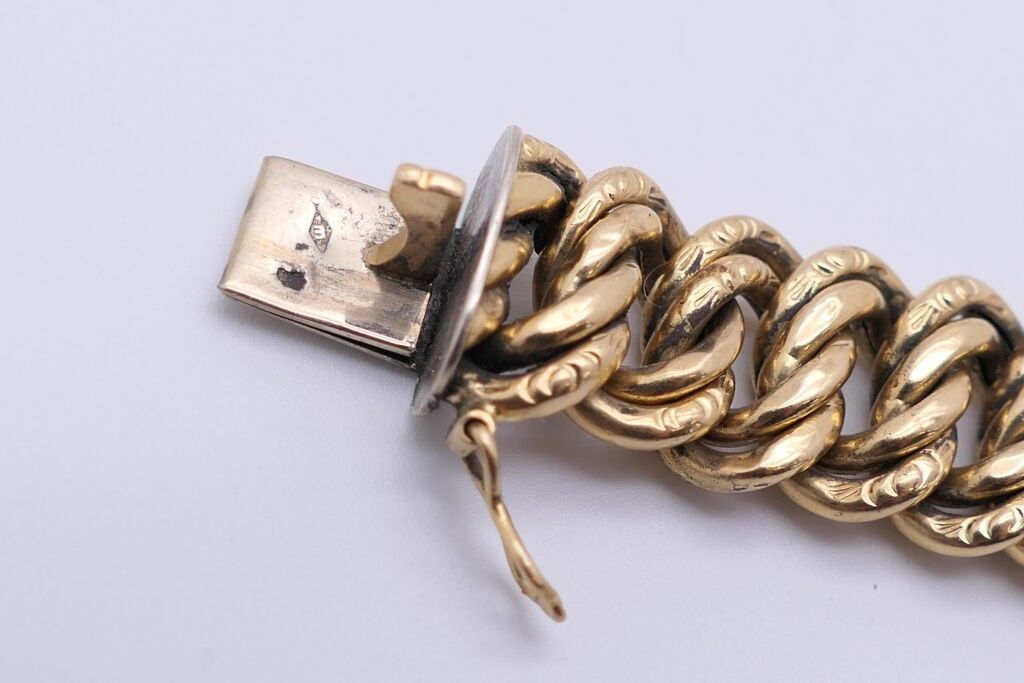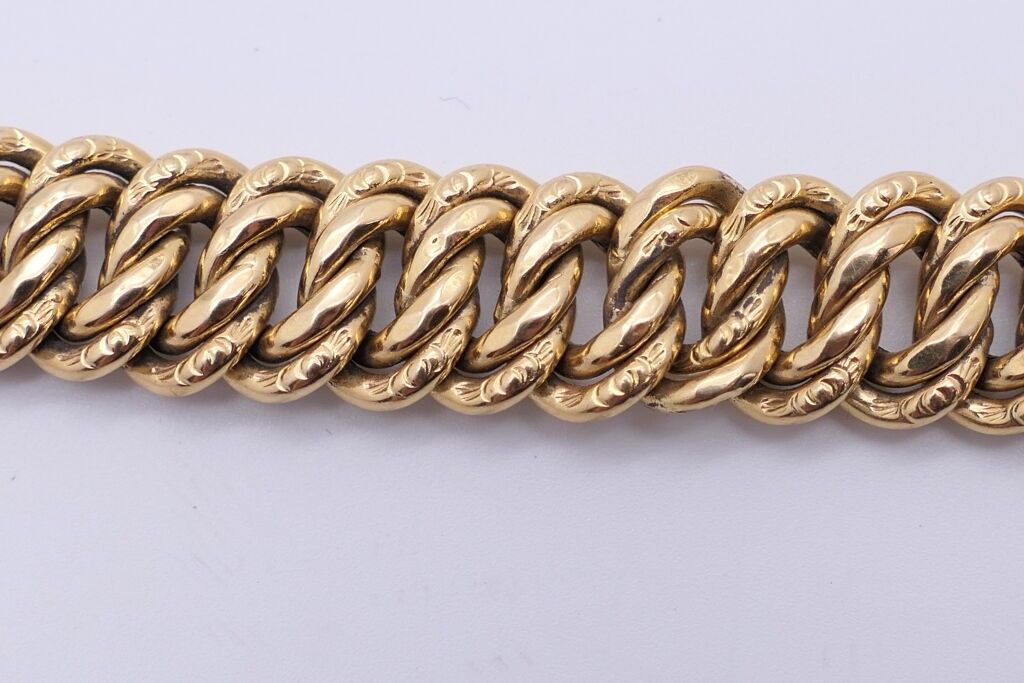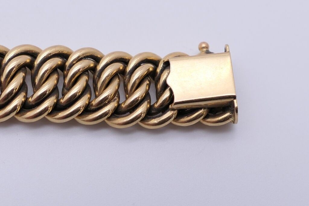 Flexible bracelet in yellow gold 750. Length: 19.5 cm approx. Weight: 26g.
