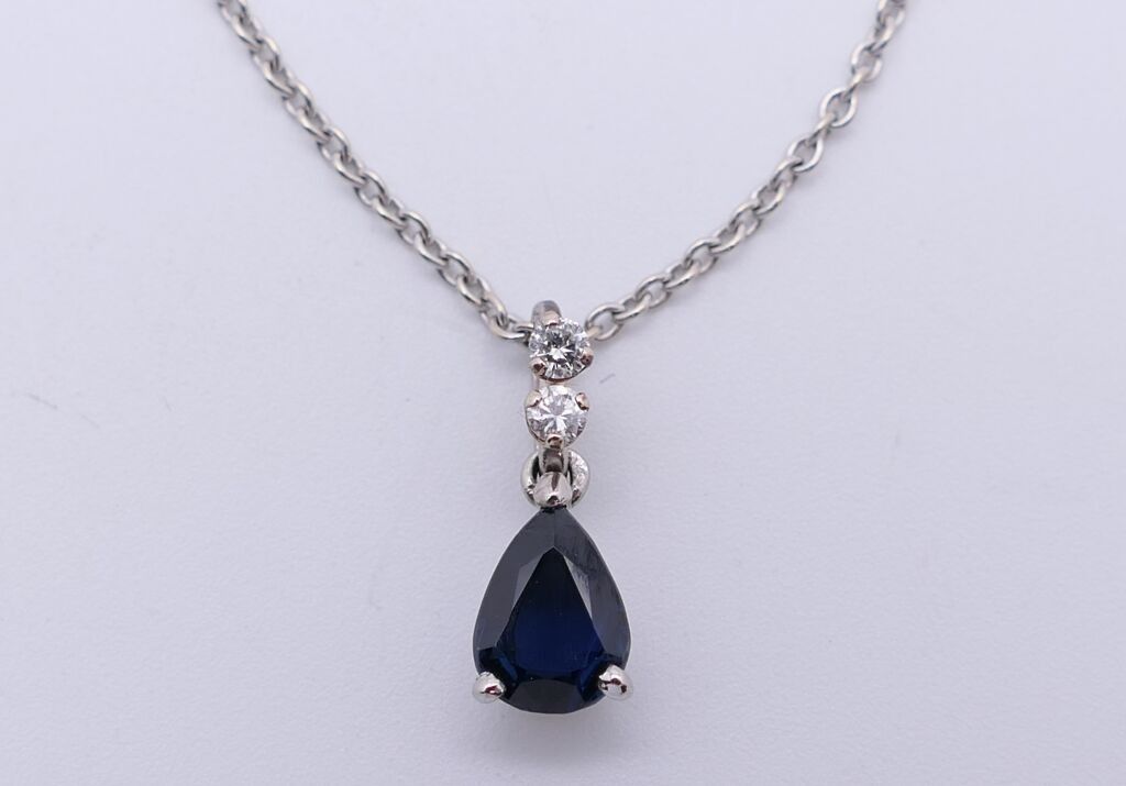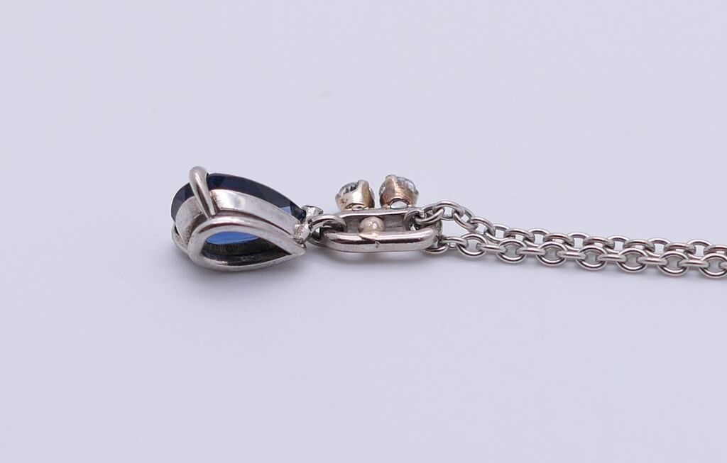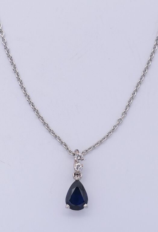 750 white gold chain with pear-shaped sapphire pendant and 2…