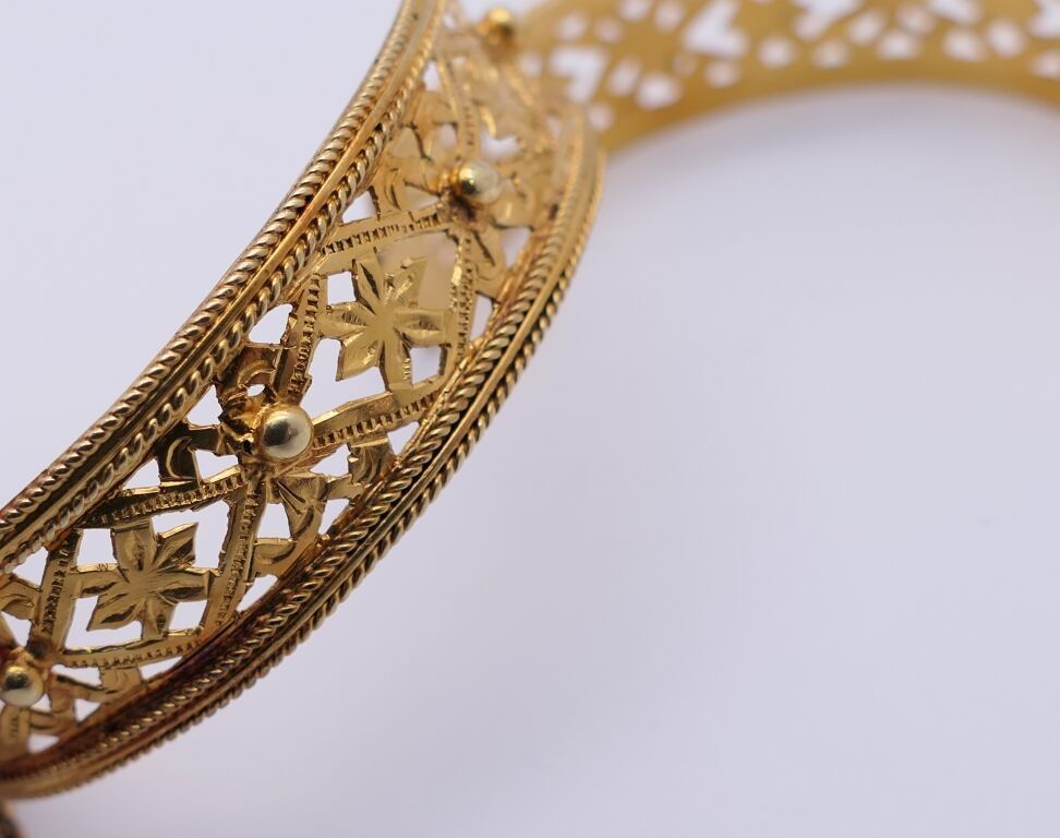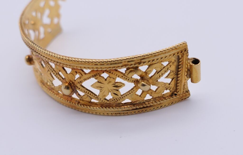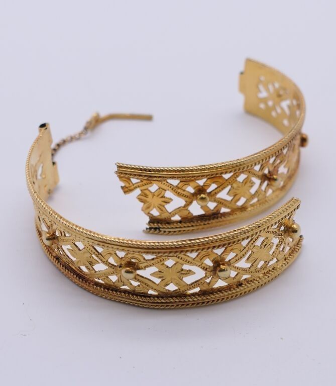 Semi-rigid bracelet in openwork yellow gold 750 (minimum).