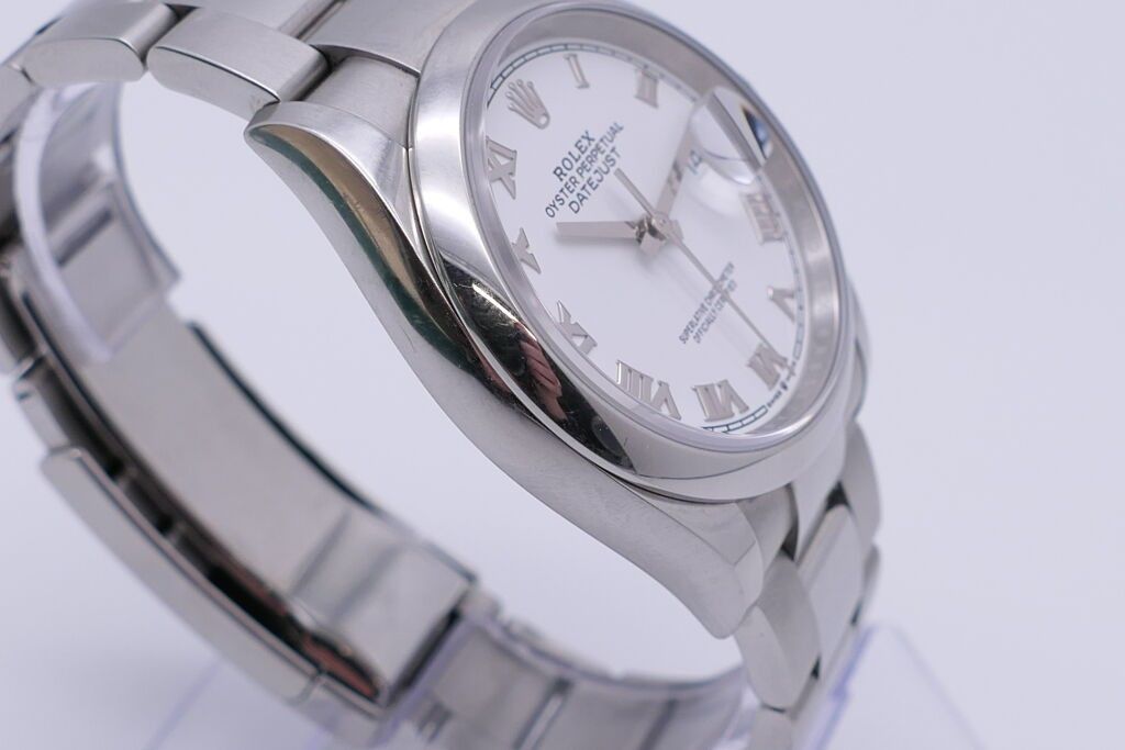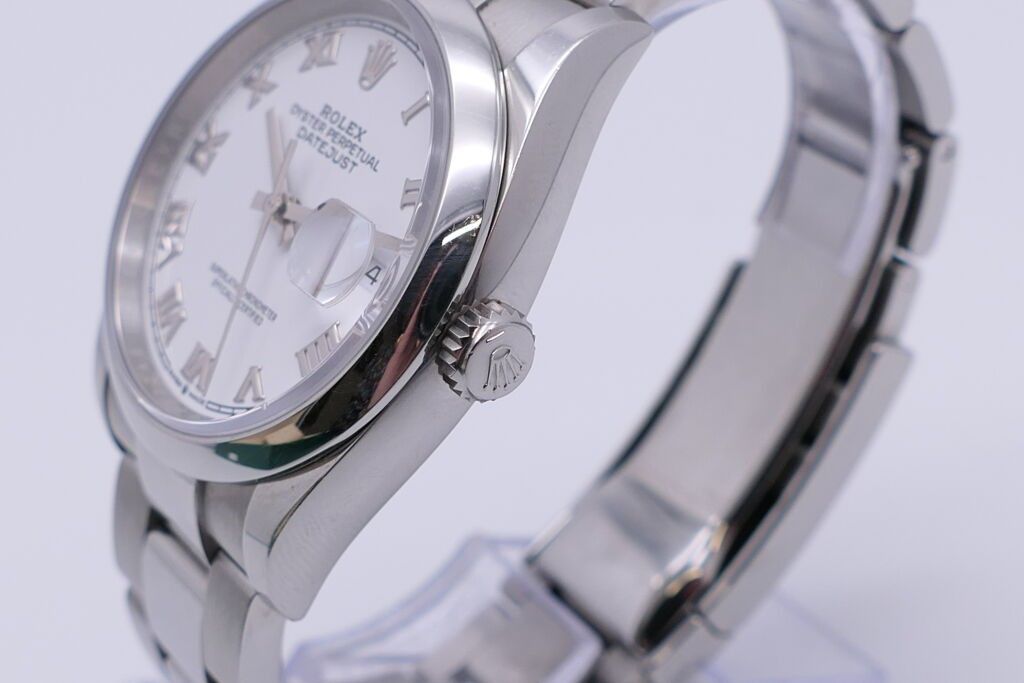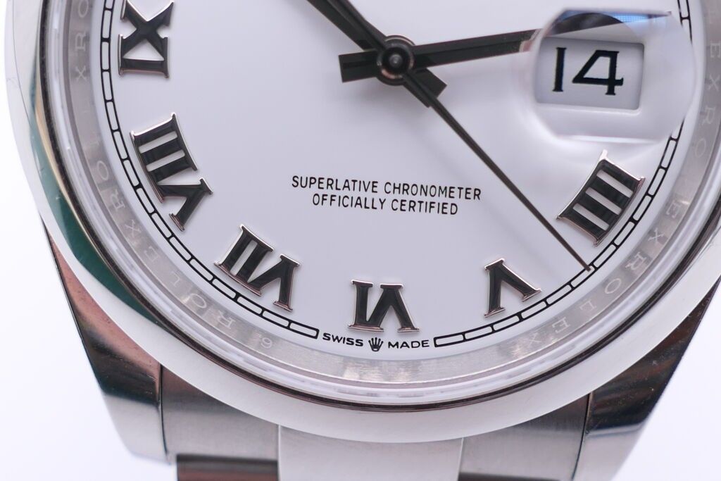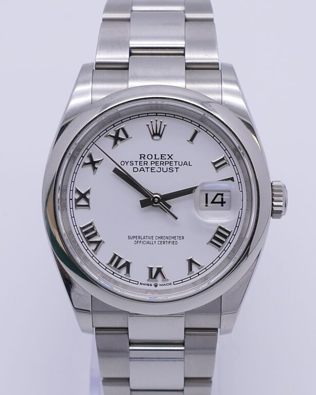 ROLEX Model: Datejust Reference: 126200 Year: 2022 Bezel: Smooth Diameter: 36 mm. Strap: oyster. Dial Index: Roman Material: Steel. Good condition with tiny micro scratches from use. Box - outer box - papers. 1 upper link. Apparent working condition.