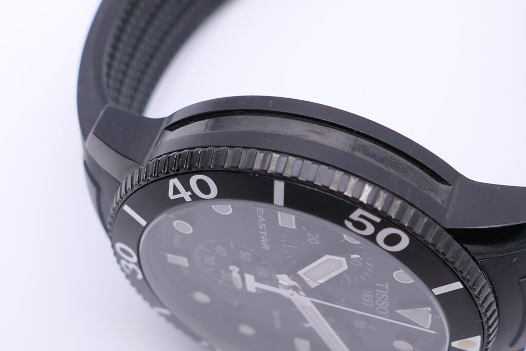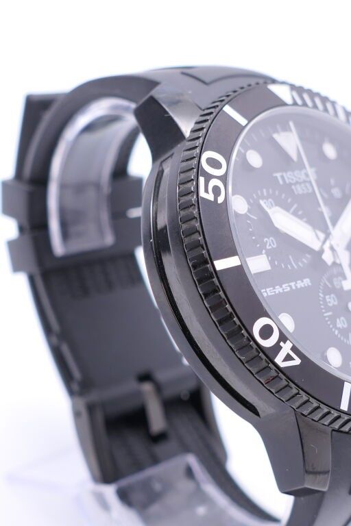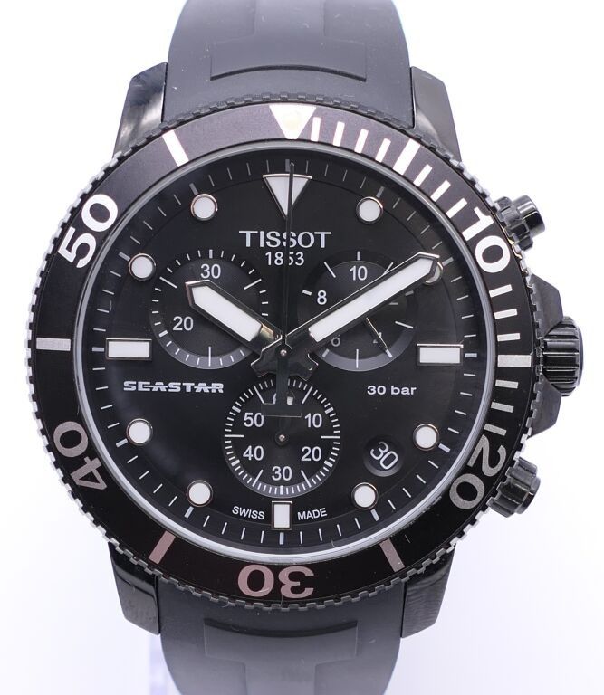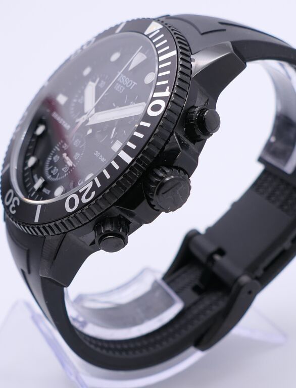 Tissot. Seastar watch. Chronograph. In black pvd case. Rubber strap. Water-resistant to 300 metres. Apparent working condition.
