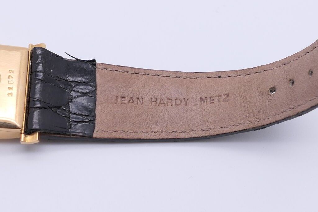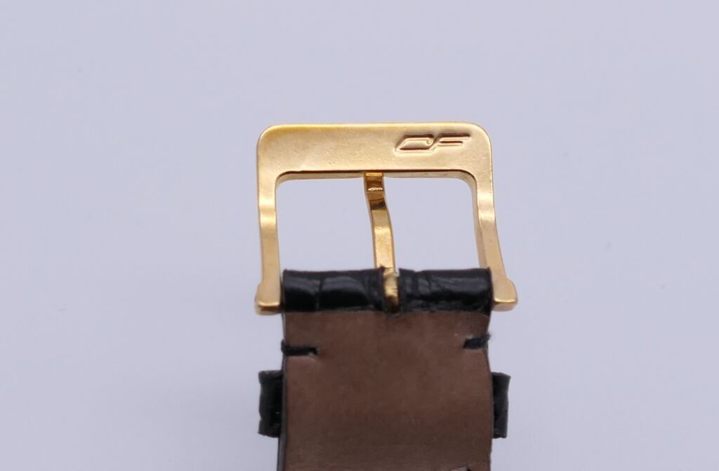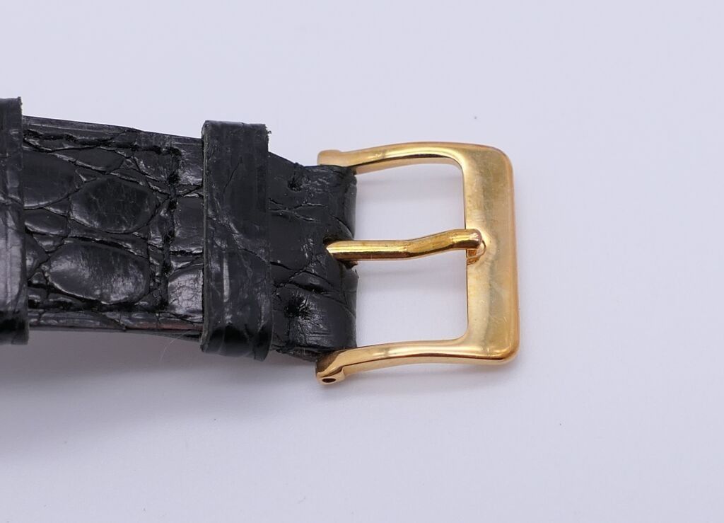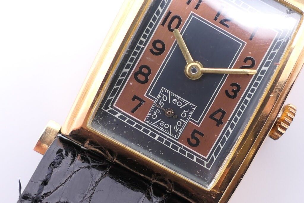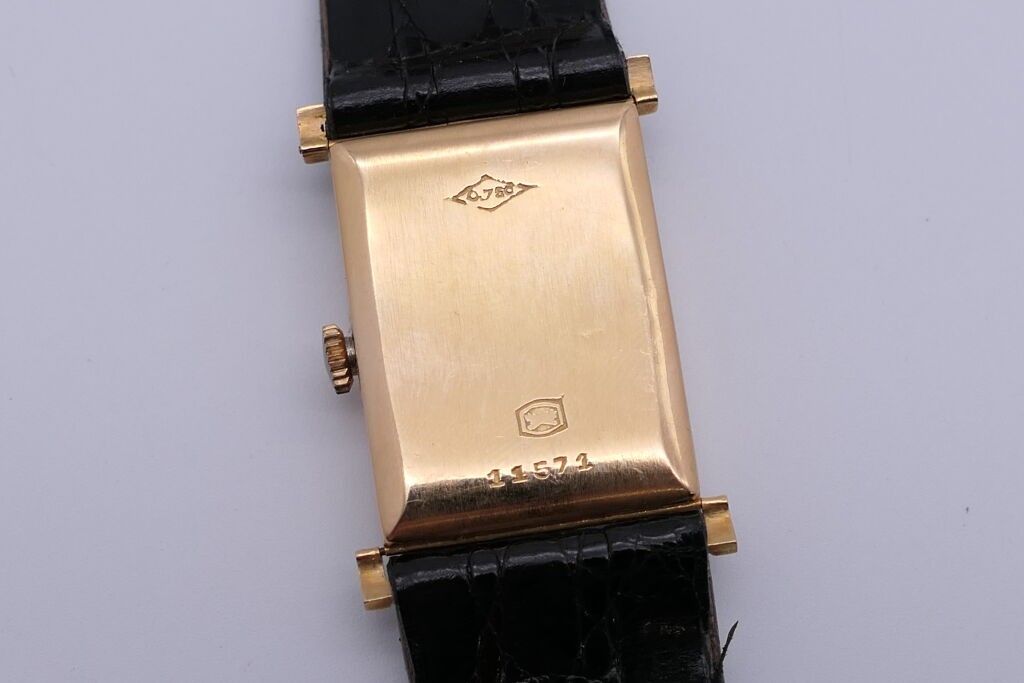 Art deco yellow gold watch. Mechanical movement. H. 35 mm with lugs. After-market leather strap. P.B. 24.8g.