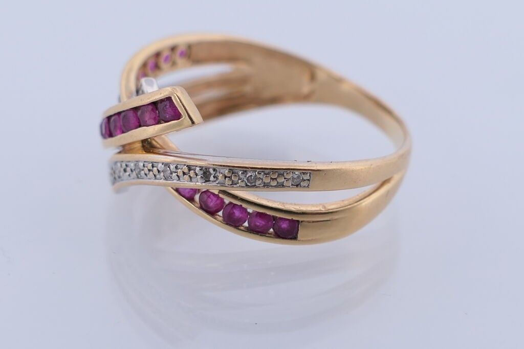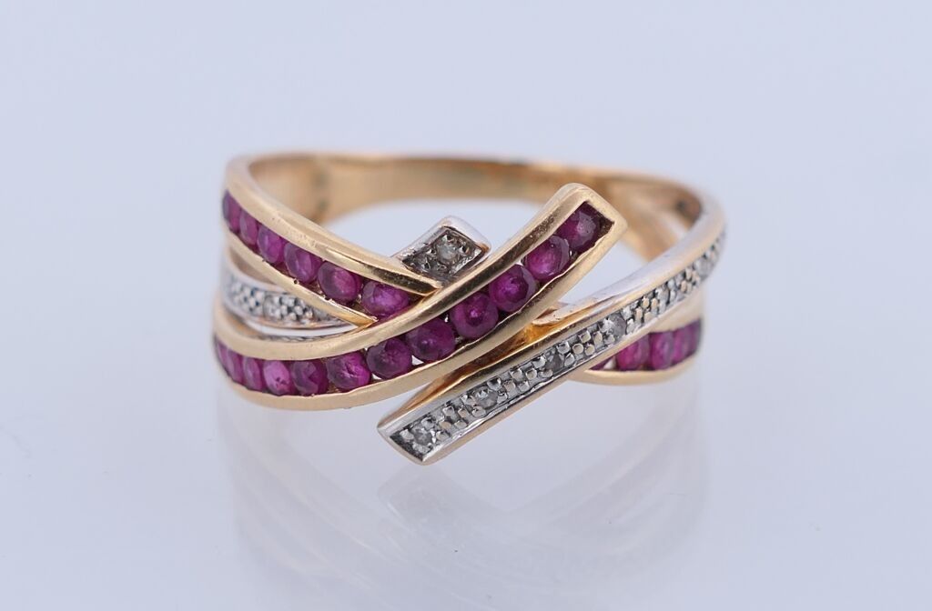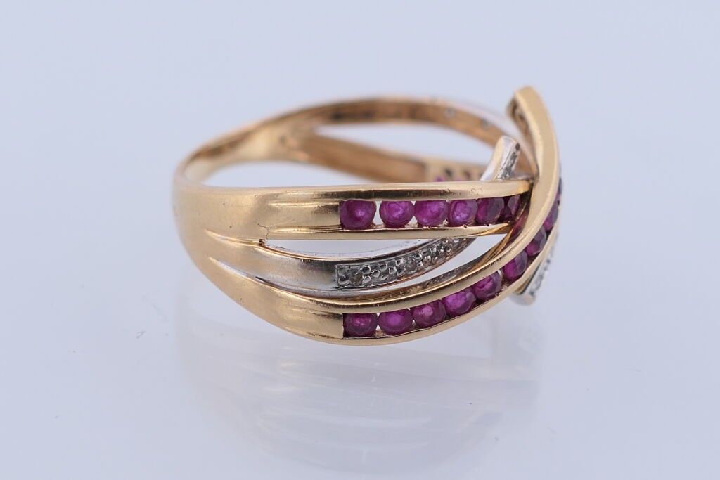 Ring in 750 yellow gold set with rubies and diamonds. TDD. 59. PB. 3.9g.