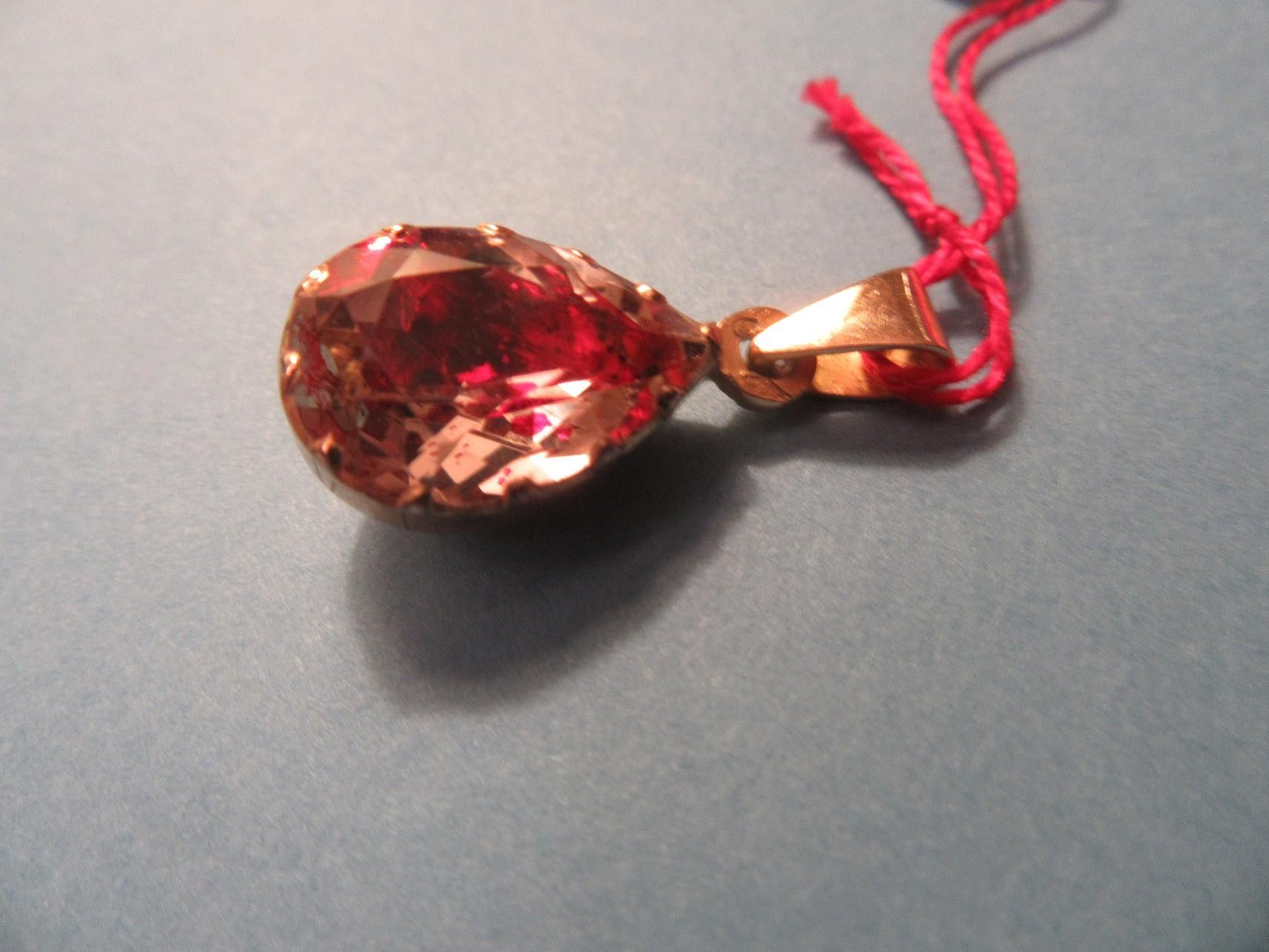 5 - "PEAR" PENDANT IN 18K GOLD AND WHITE STONE WITH RED REFL…