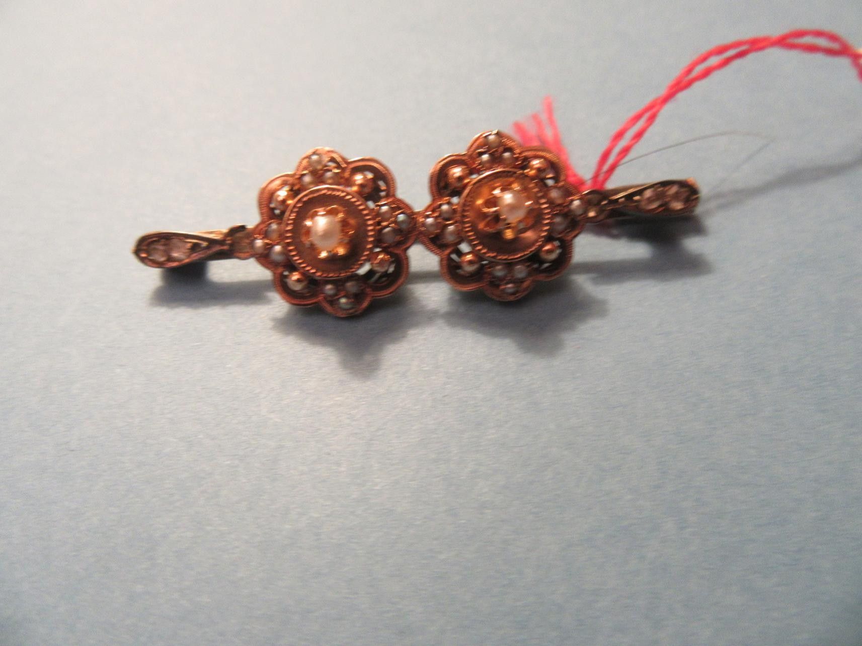 9 - ANCIENT 18K GOLD PINK SET WITH DIAMOND PEARLS AND ROSES …