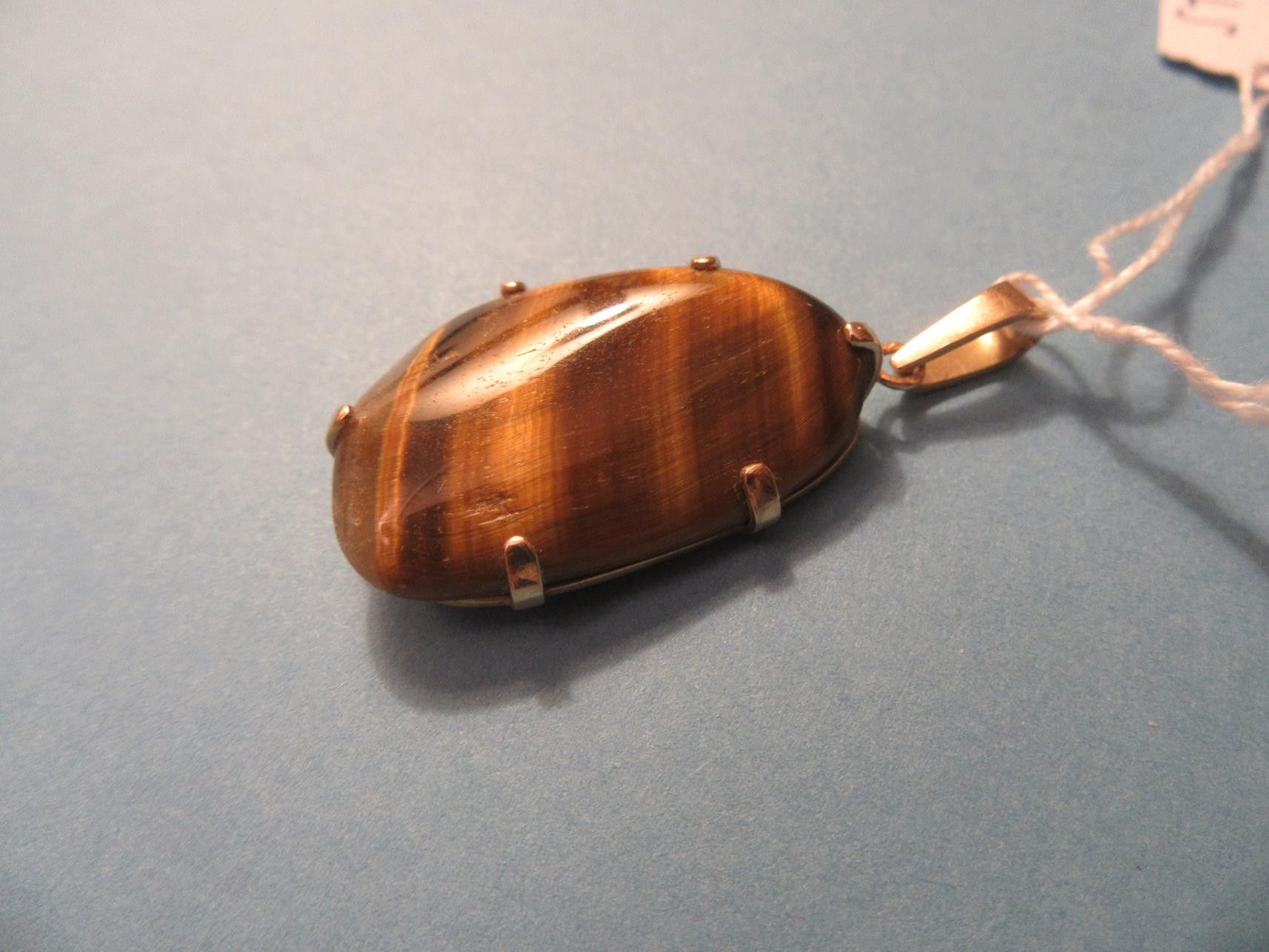 19 - 18K YELLOW GOLD PENDANT SET WITH A TIGER'S EYE - Gross weight 8.4 gr 80 - 100 EURO