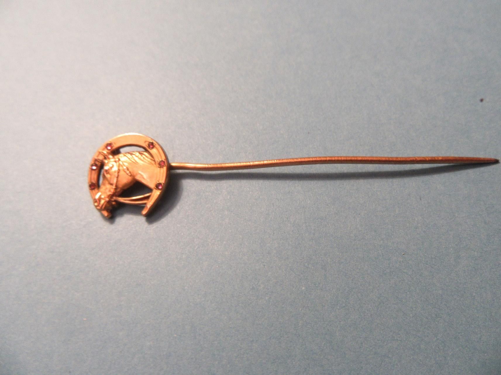 23 - "HORSE AND HORSESHOE" TIE PIN IN GOLD PLATE FIX .