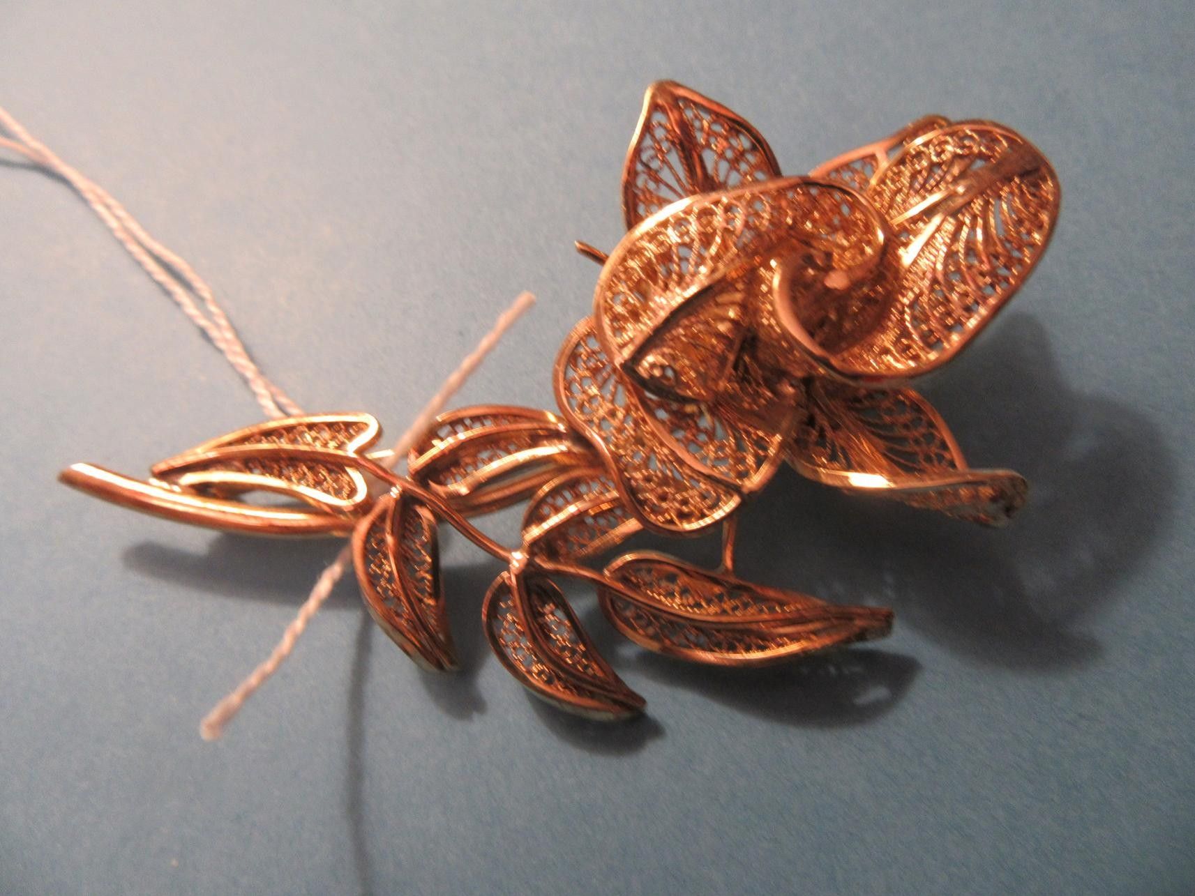39 - FLOWER PINK IN 18K GOLD FILIGRANE - 21.6 gr 800 - 1000 EURO