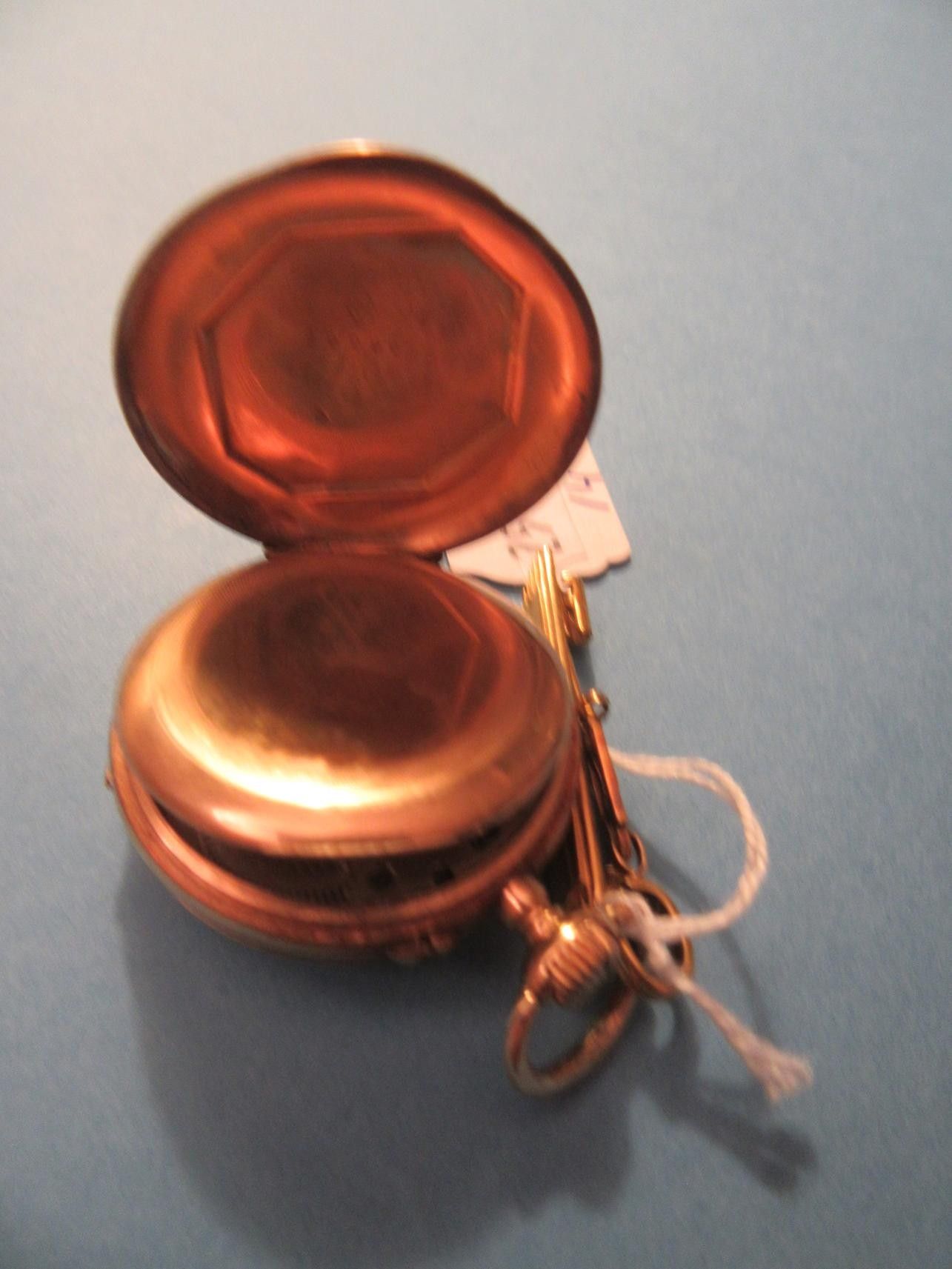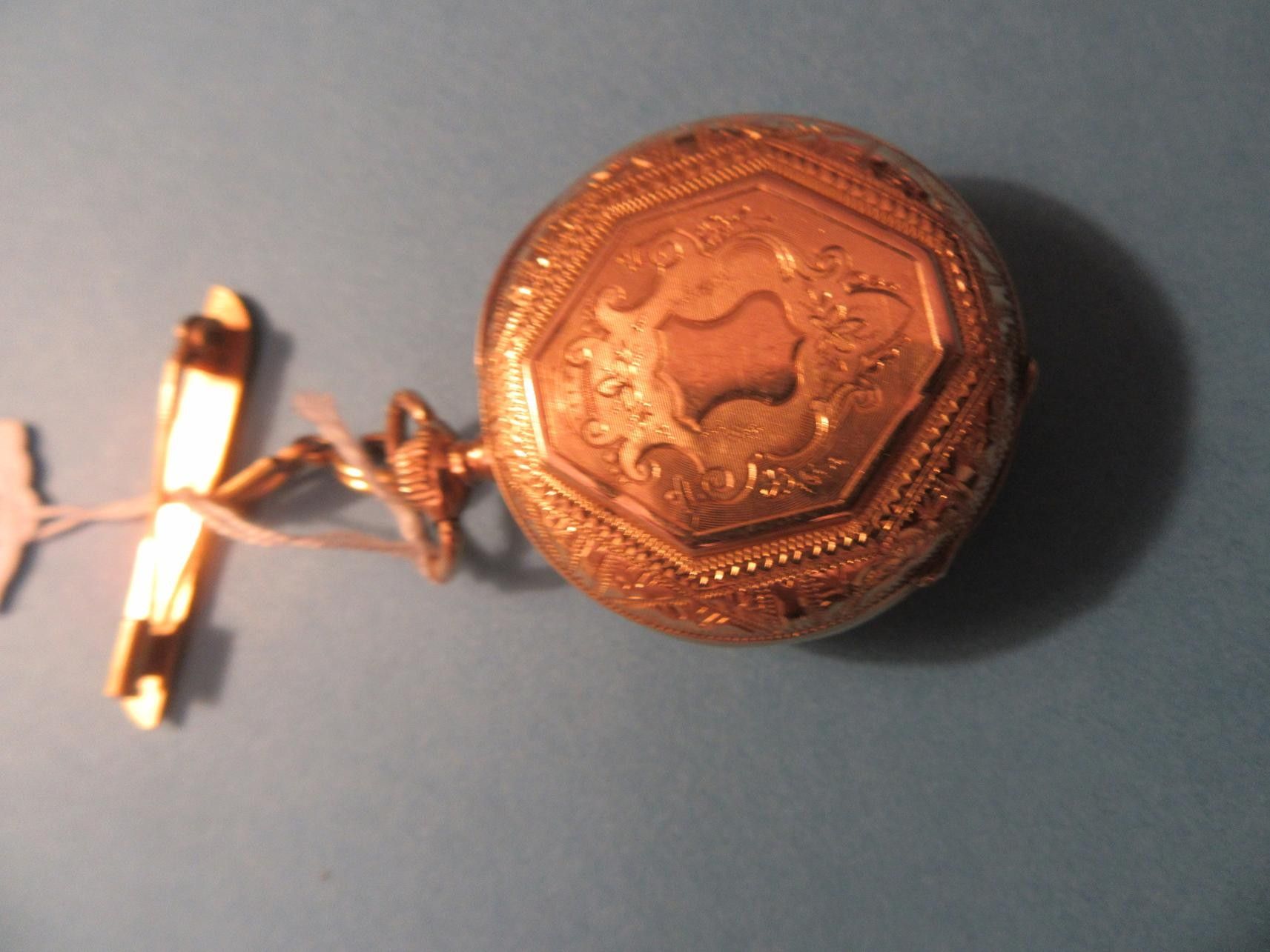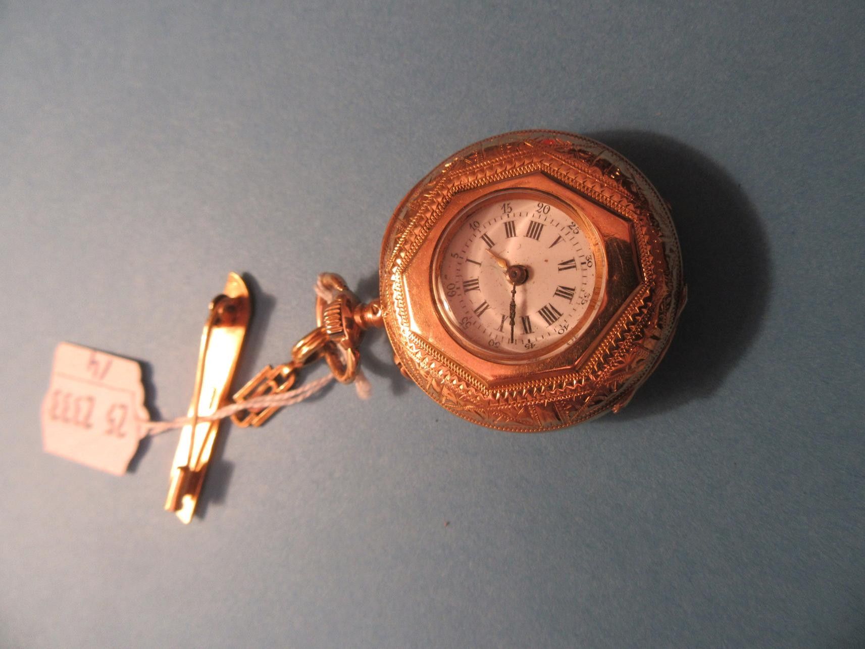 64 - NECK WATCH IN 18K GOLD (gross weight 23.2 gr) + PINGLE, CHAIN PENDANT IN GOLDEN METAL MURAT (three photographs) 350 - 450 EURO