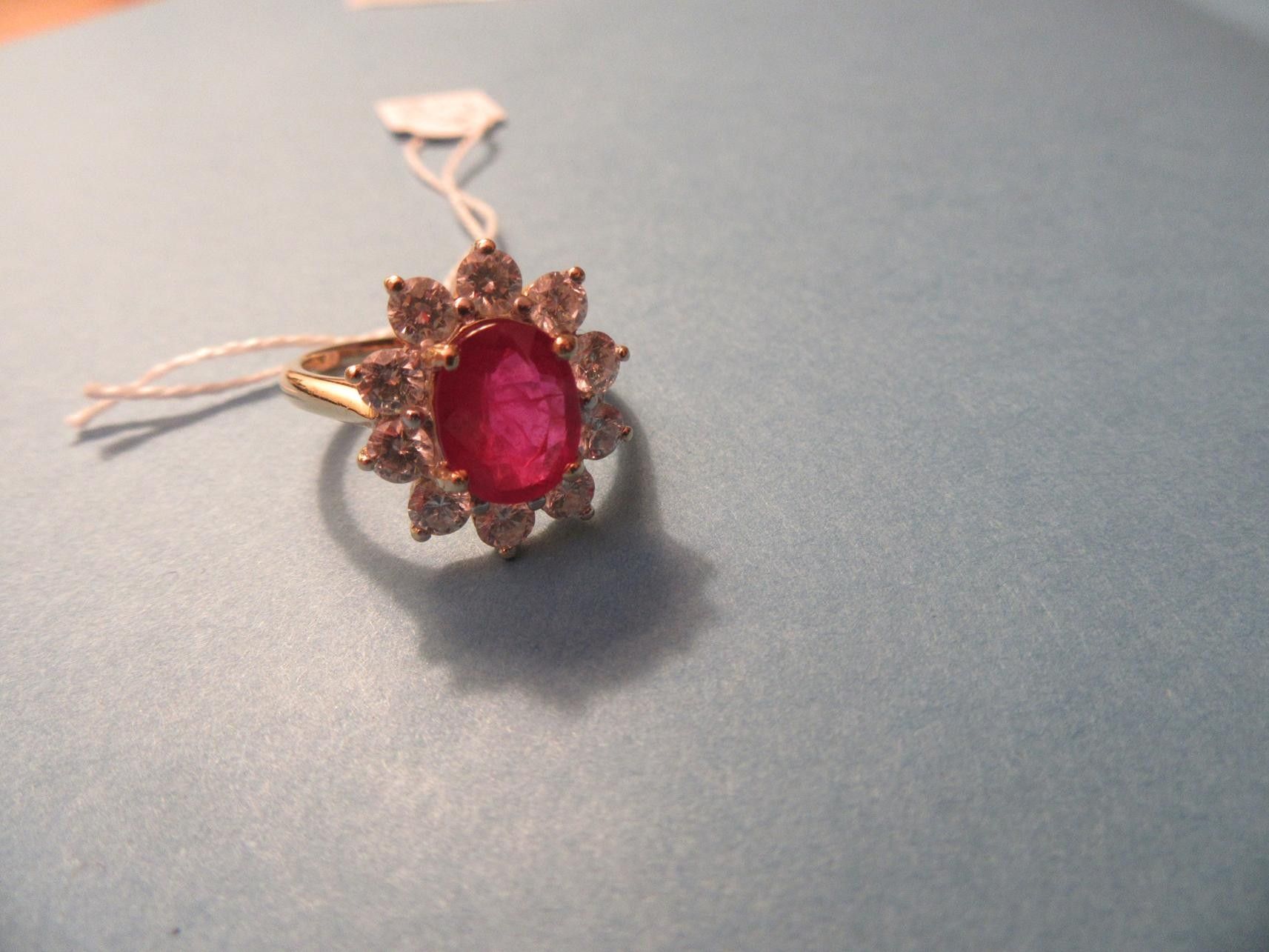 81 - "MARGUERITE" RING IN 18K (750 thousandths) YELLOW GOLD SET WITH A CENTRAL RUBY SURROUNDED BY DIAMONDS - Weight: 6.5 grams - FINGER SIZE 56 3000 - 5000 EURO