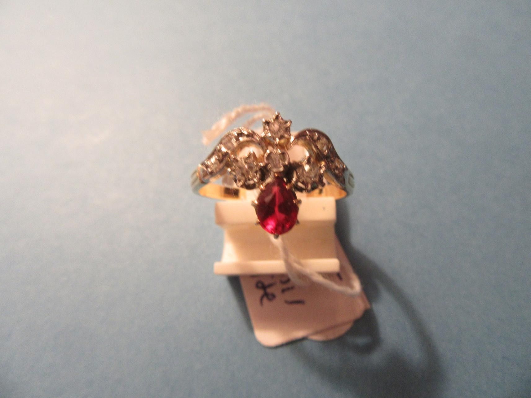 86 - BEAUTIFUL OLD RING IN 18K GOLD SET WITH A "GOUTTE" RUBY AND DIAMOND ECLATS - FINGER SIZE 50 - Weight : 3.2 gr (small chip) 200 - 300 EURO