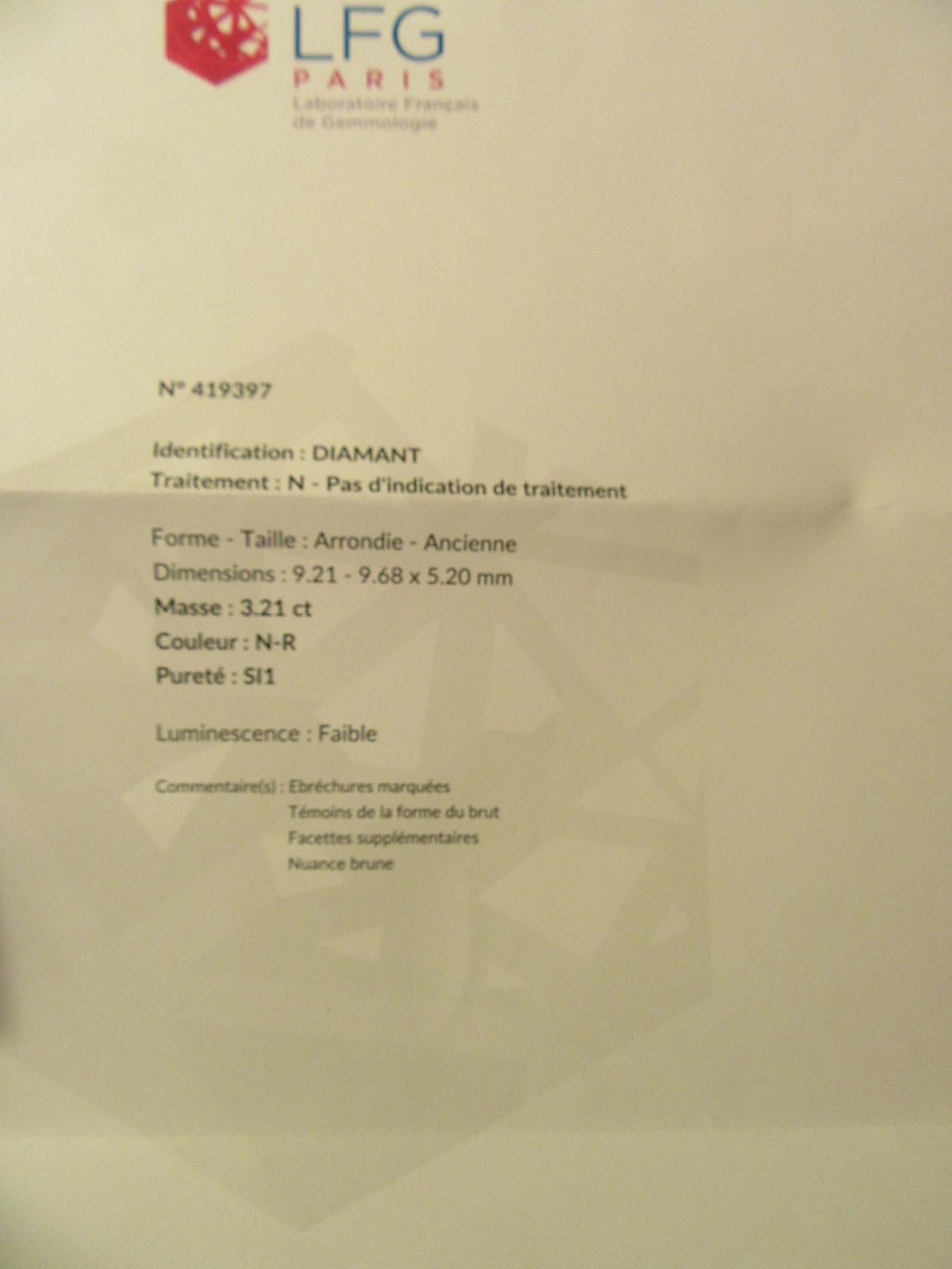 167 - ANCIENT 18K SILVER AND GOLD DROOP WITH A 3.21 CT DIAMOND (RESERVED FOR EXPERTISE) AND PINK SIZE DIAMONDS - Gross weight 13.7 gr (sold with LFG PARIS certificate) (expert Laura MONGENI) (two photographs) 3000 - 5000 EURO