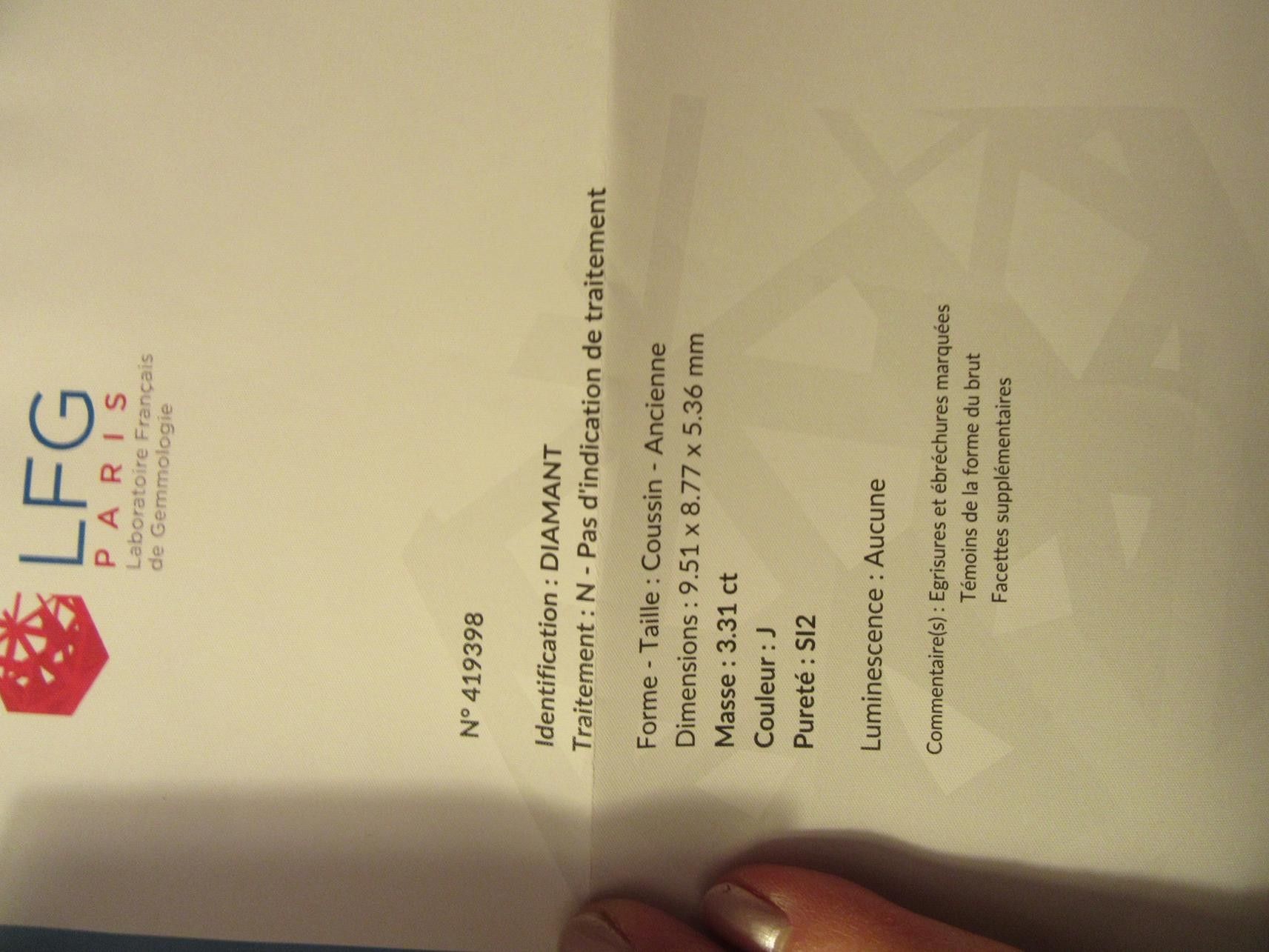 182 - RING IN 18K GOLD AND PLATINUM SET WITH A DIAMOND OF 3.31 CT (DESSERTED FOR EXPERTISE) - Gross weight 2.9 gr, WITH CERTIFICATE (expert Laura MONGENI) (two photographs) 2500 - 3500 EURO