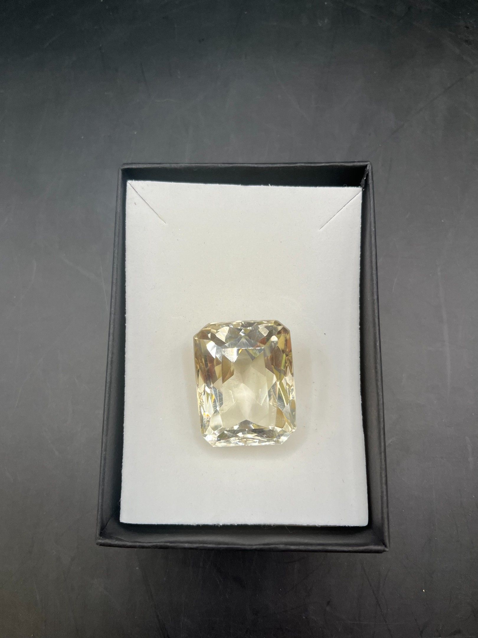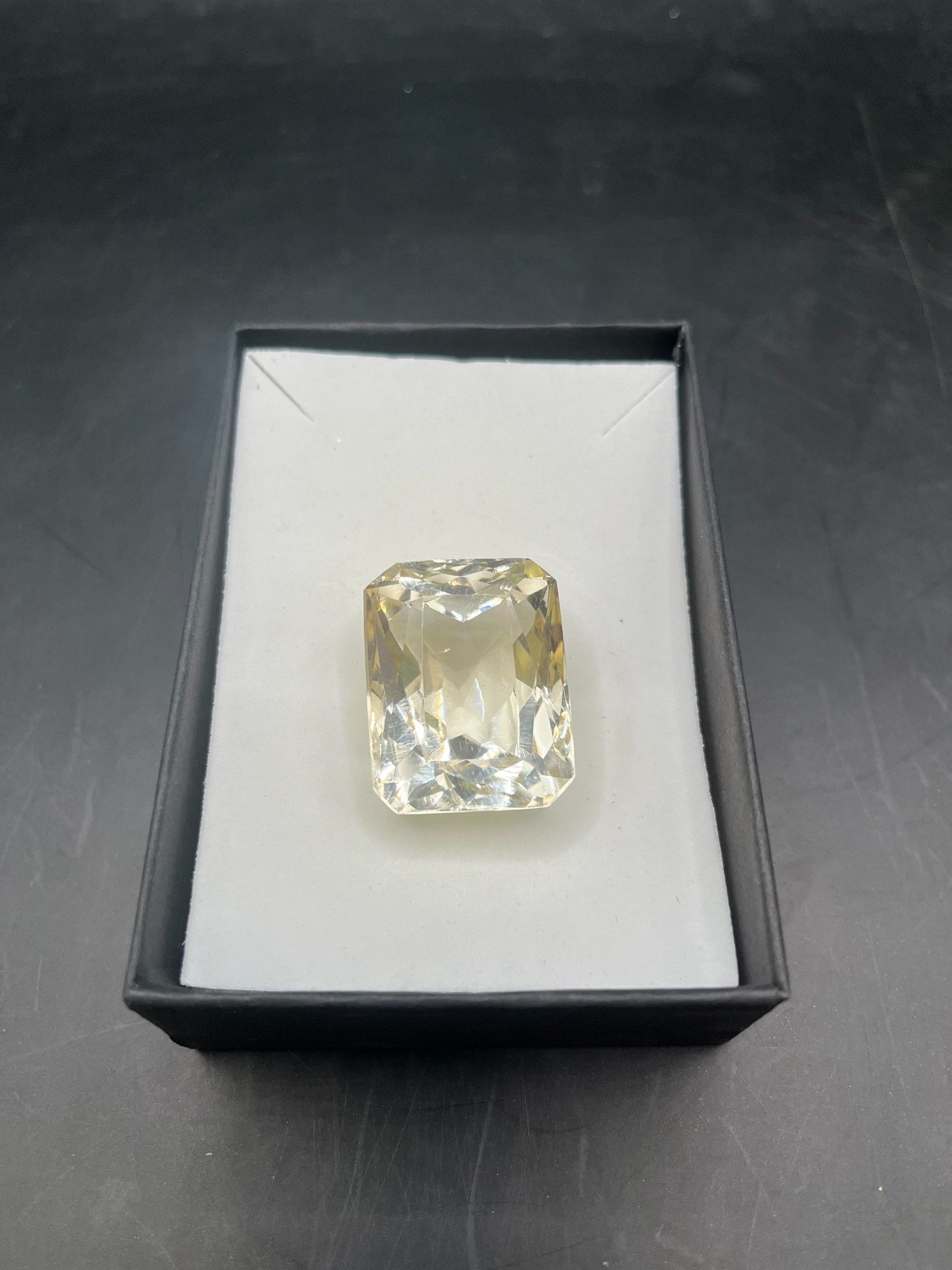 Enormous 87.60cts radiant-cut white quartz (28.