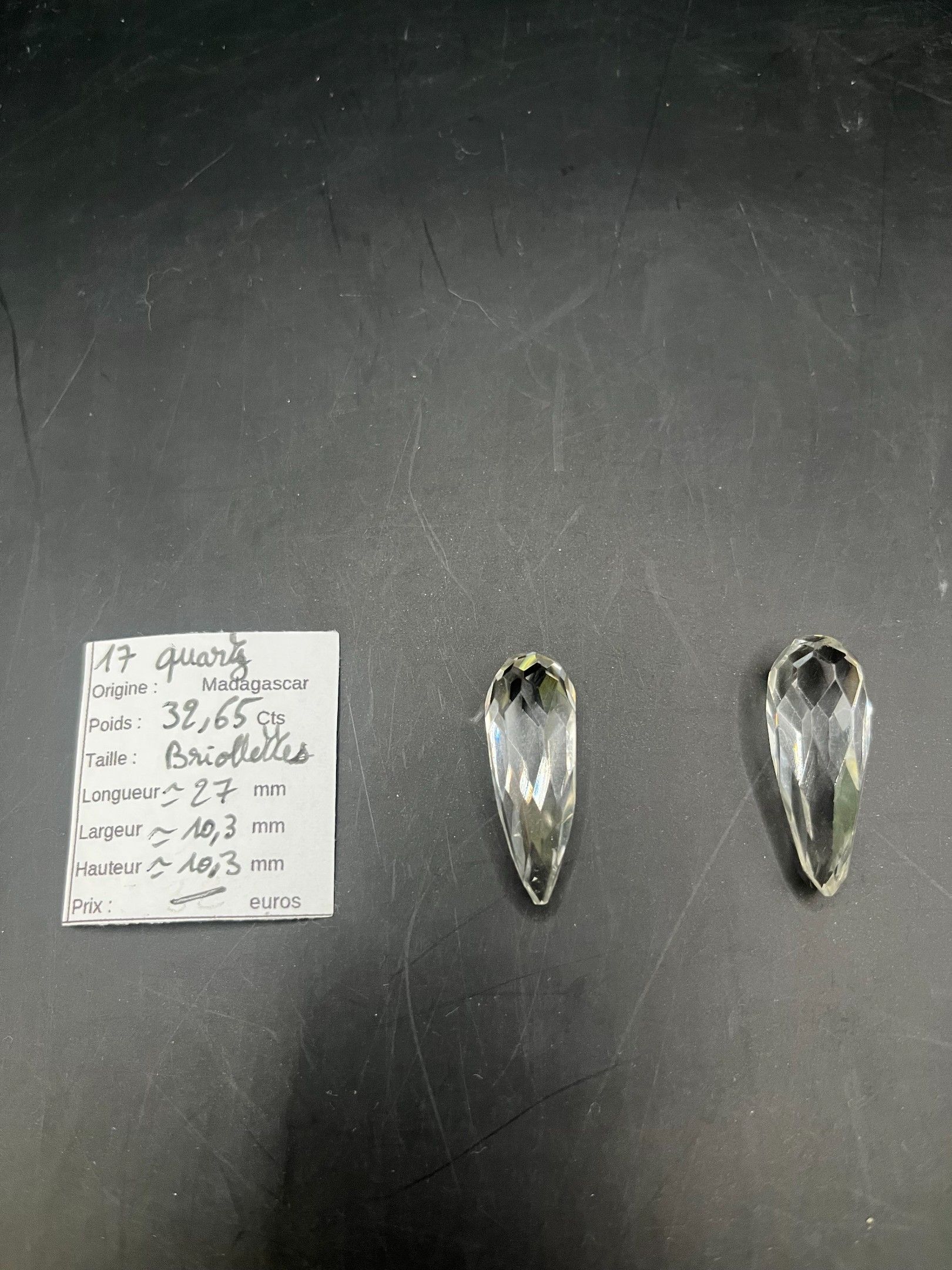lot of 2 white quartz briollette cut 32,65cts (about 27mm/10,30mm) from Madagascar