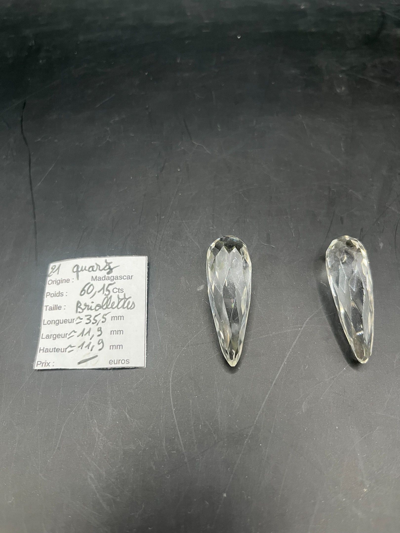 lot of 2 white quartz briollette cut 60,15cts (about 35,50mm…