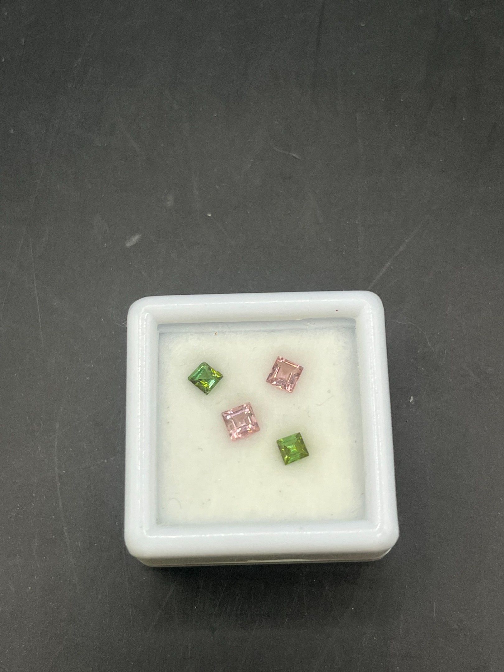 lot of 4 green/pink princess cut tourmaline 0,75ct (about 3,…