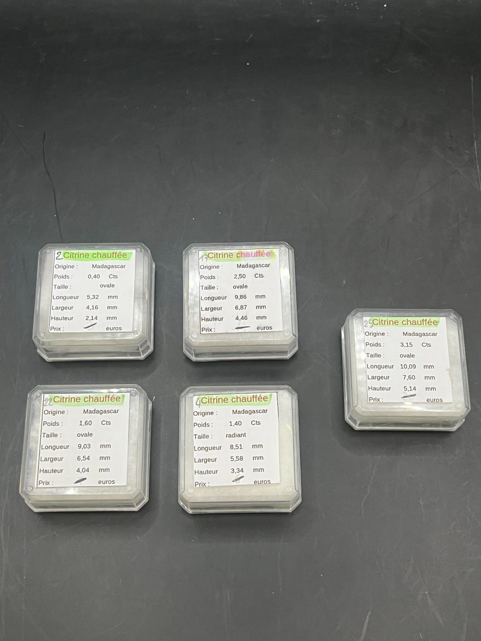 lot of 5 citrine (heated) various sizes 0.40/1.40/1.60/2.50/3.15cts from Madagascar