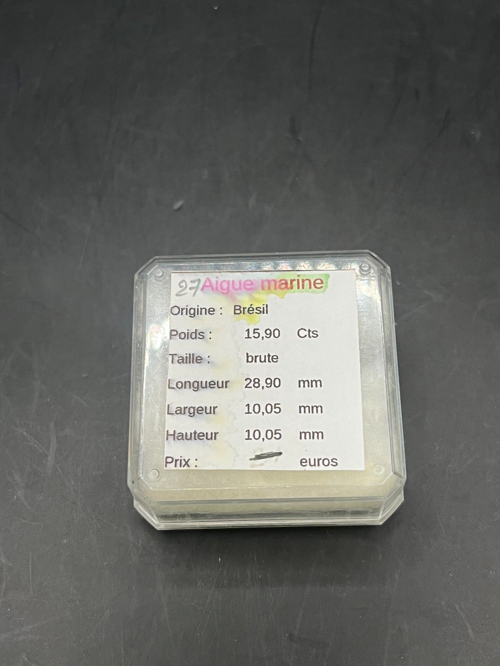 rough aquamarine 15.90cts (28.9mm/10.05mm/10.05mm) from Brazil