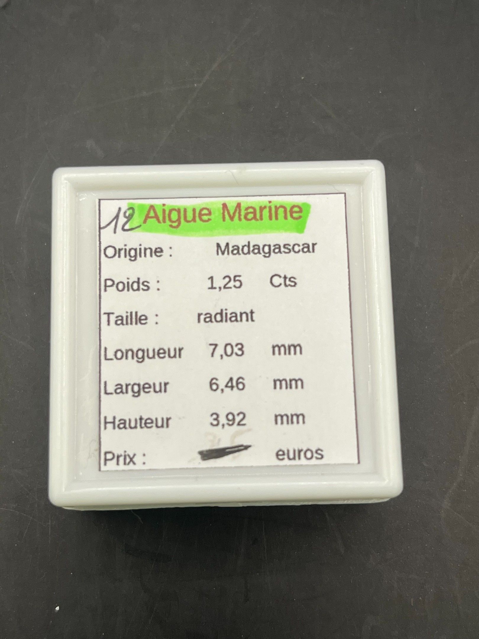 1.25ct radiant cut aquamarine (7.03mm/6.46mm/3.92mm) from Madagascar
