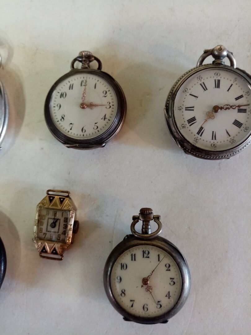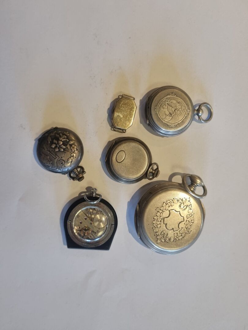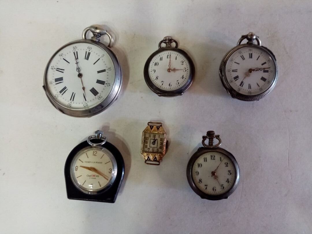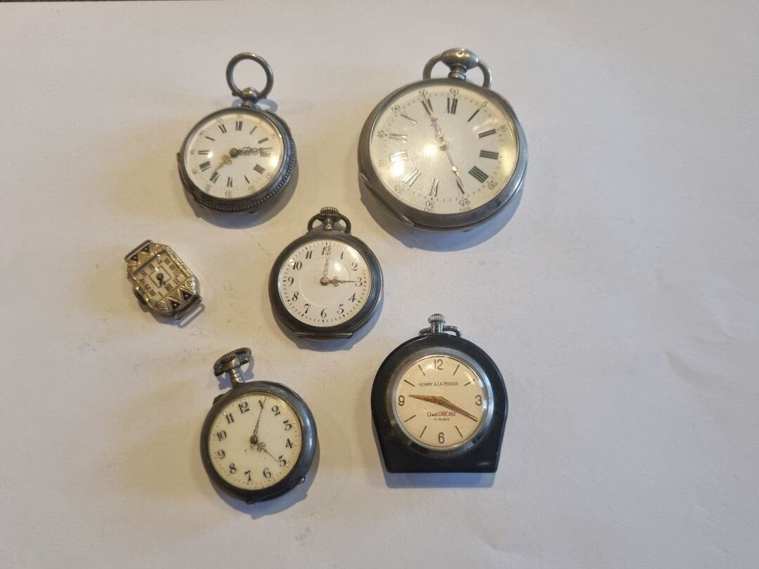 Lot of six watches, four in silver. One in metal signed HENRY A LA PENSEE