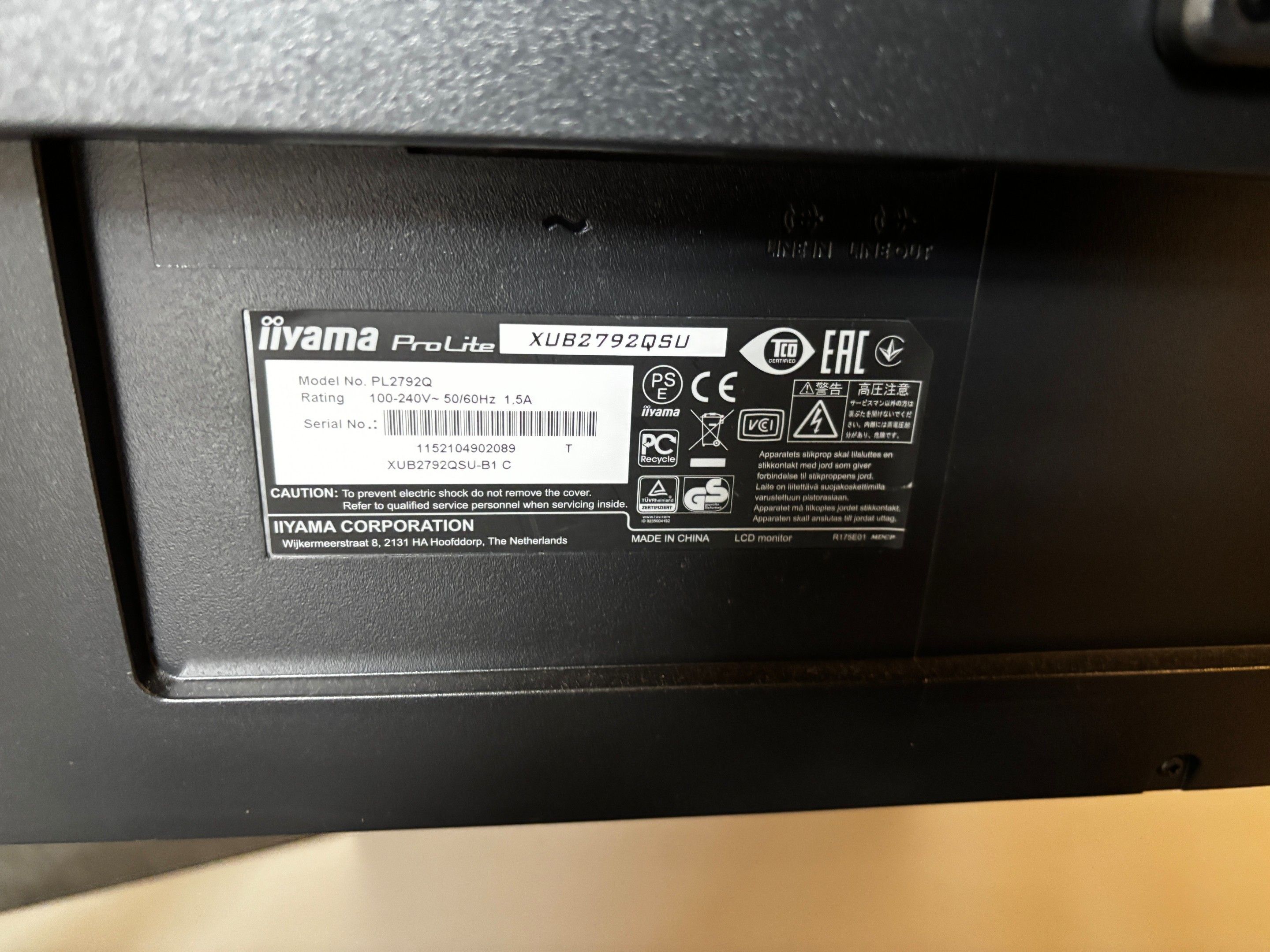 - 1 IIYAMA all-in-one computer (PL2792Q, n°92QSU)