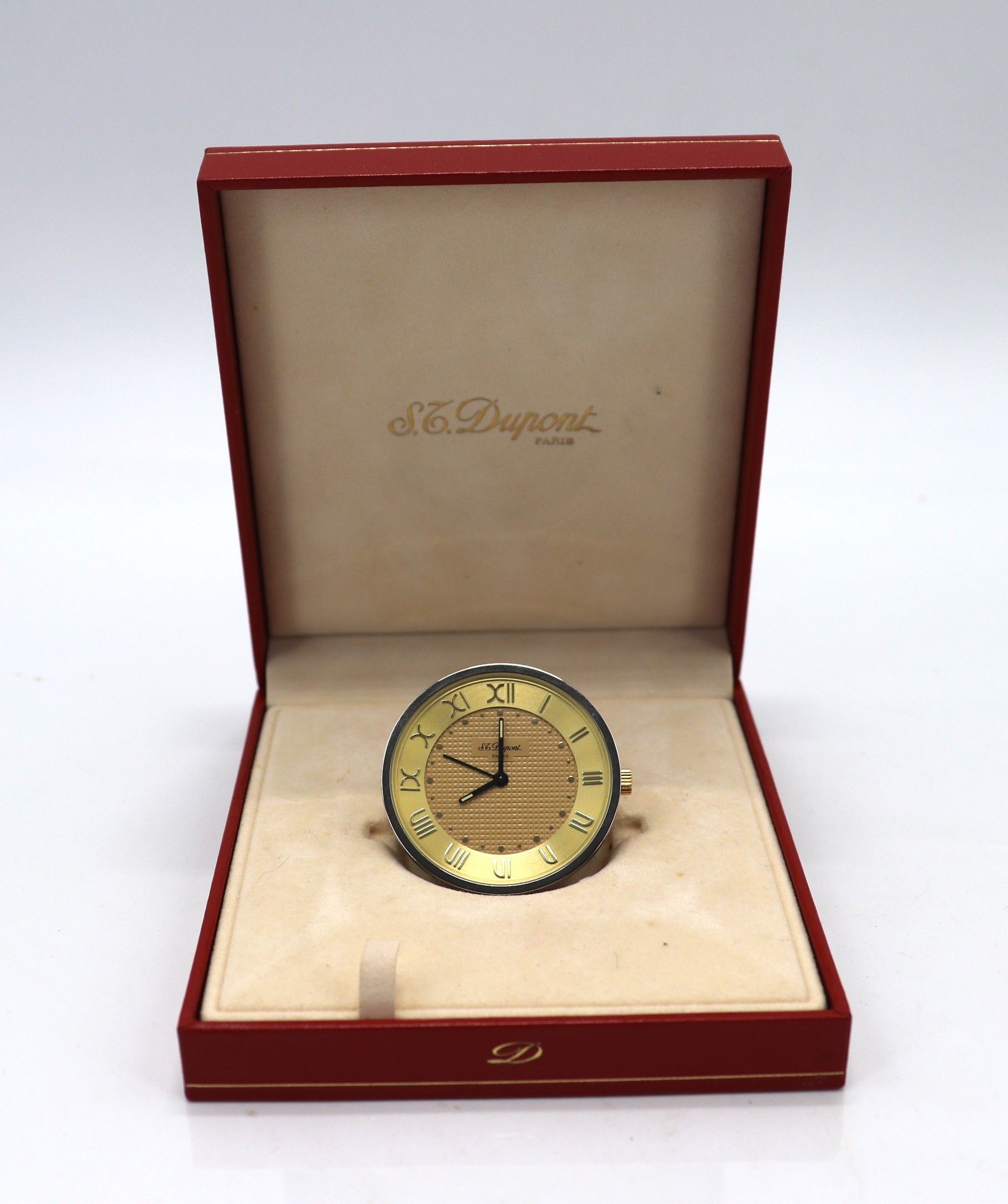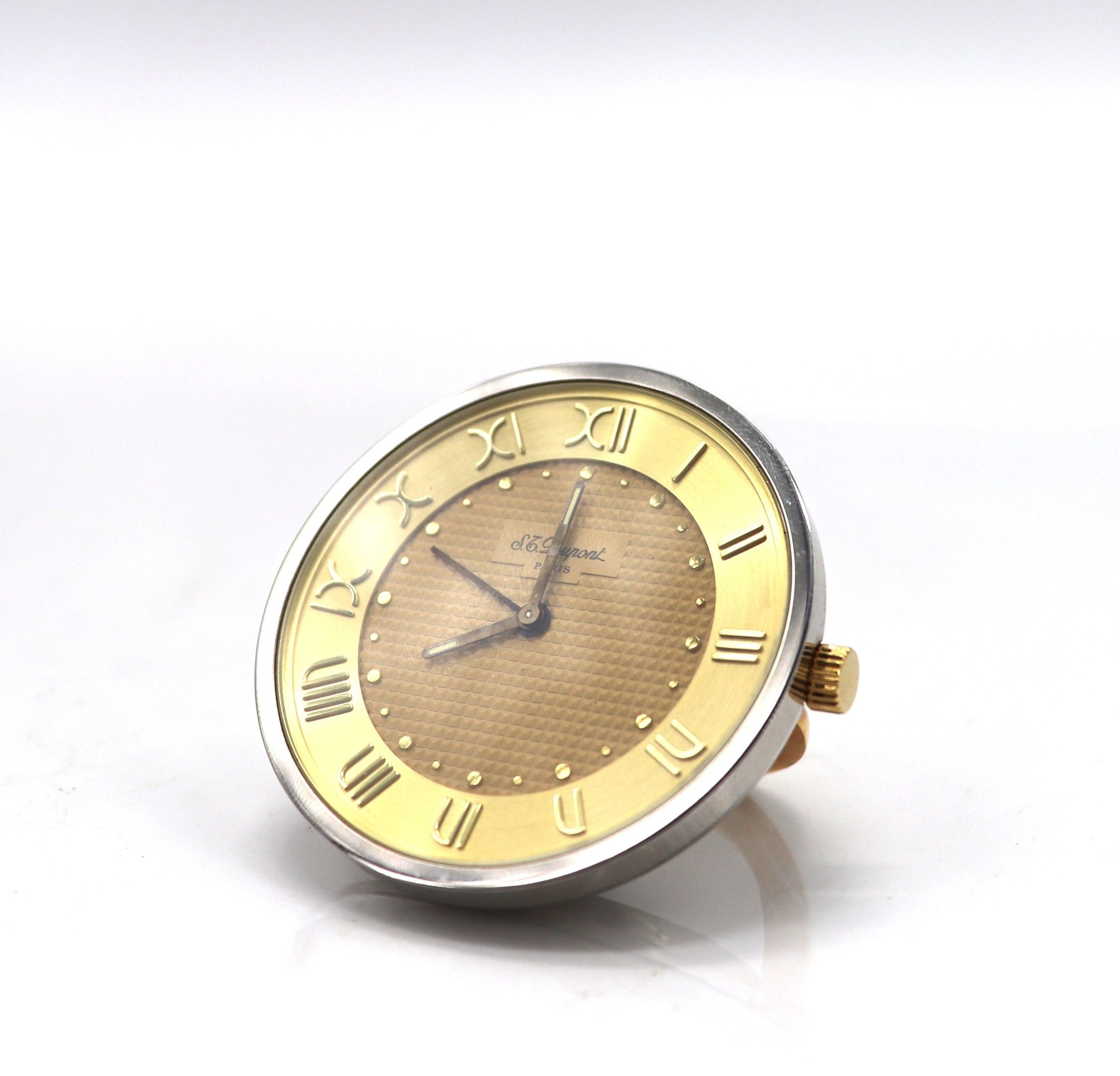 DUPONT Small travel alarm clock in its case. Diameter 4.5 cm