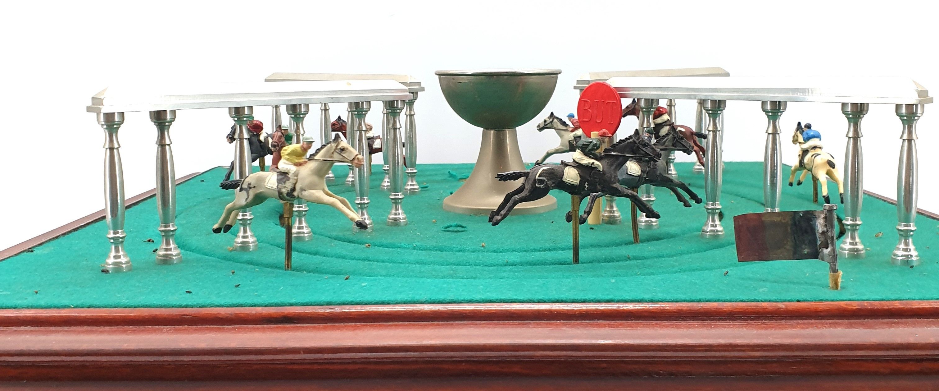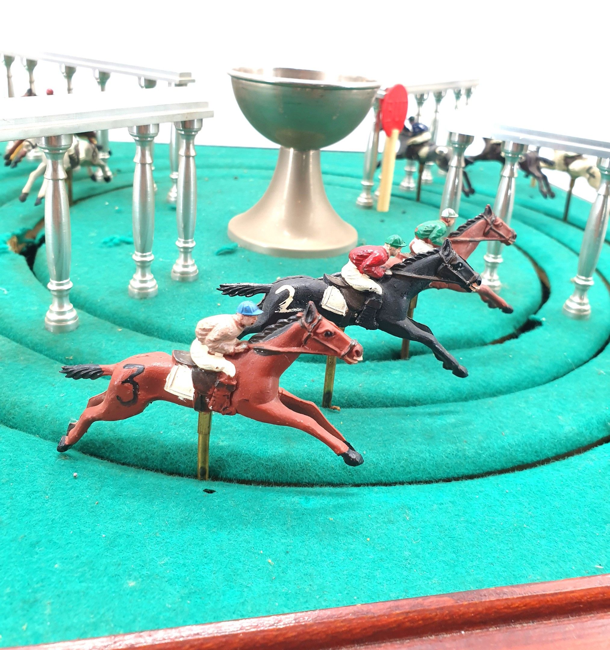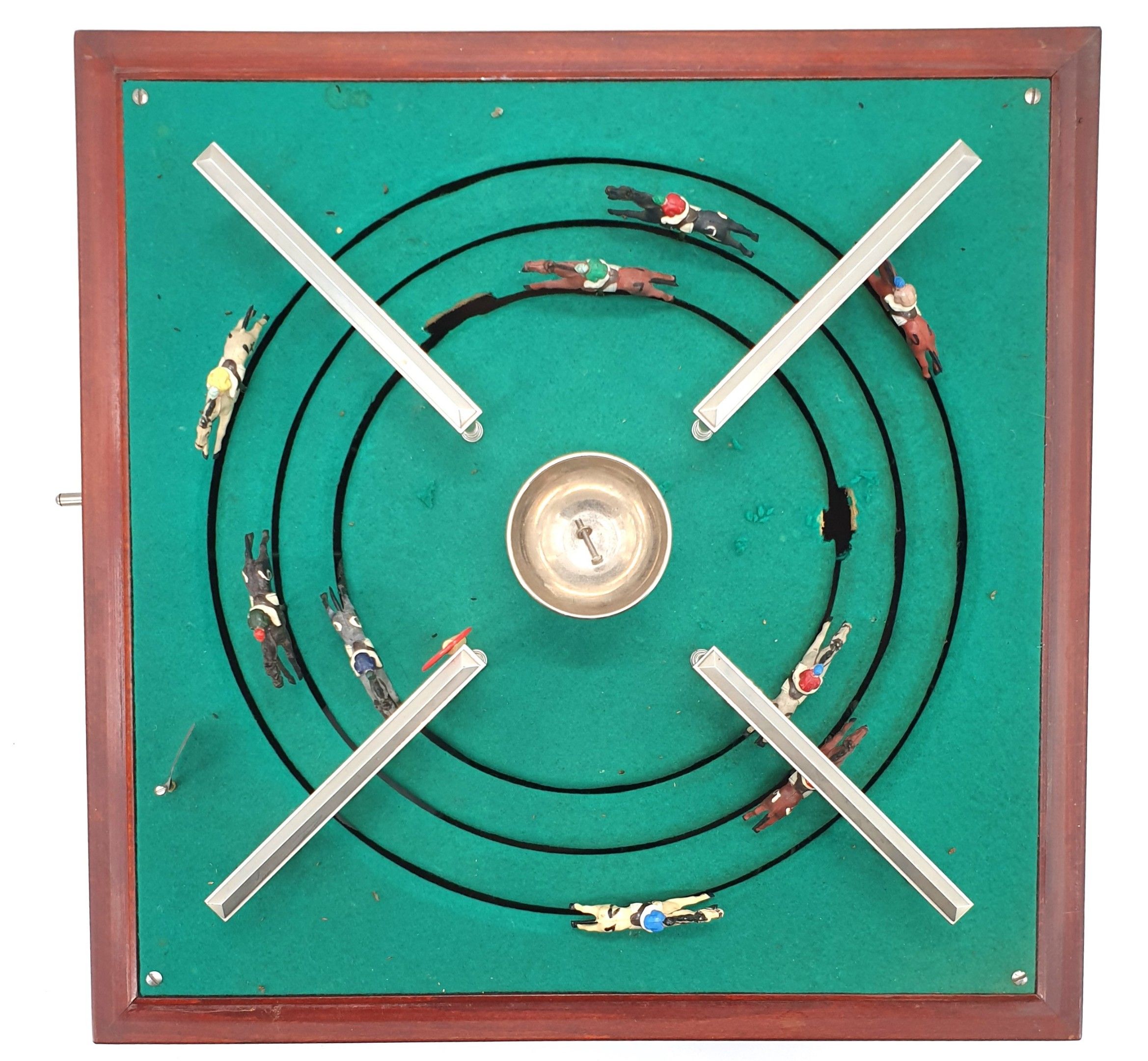 Mahogany box with mechanical horse racing game. Made by CARO…