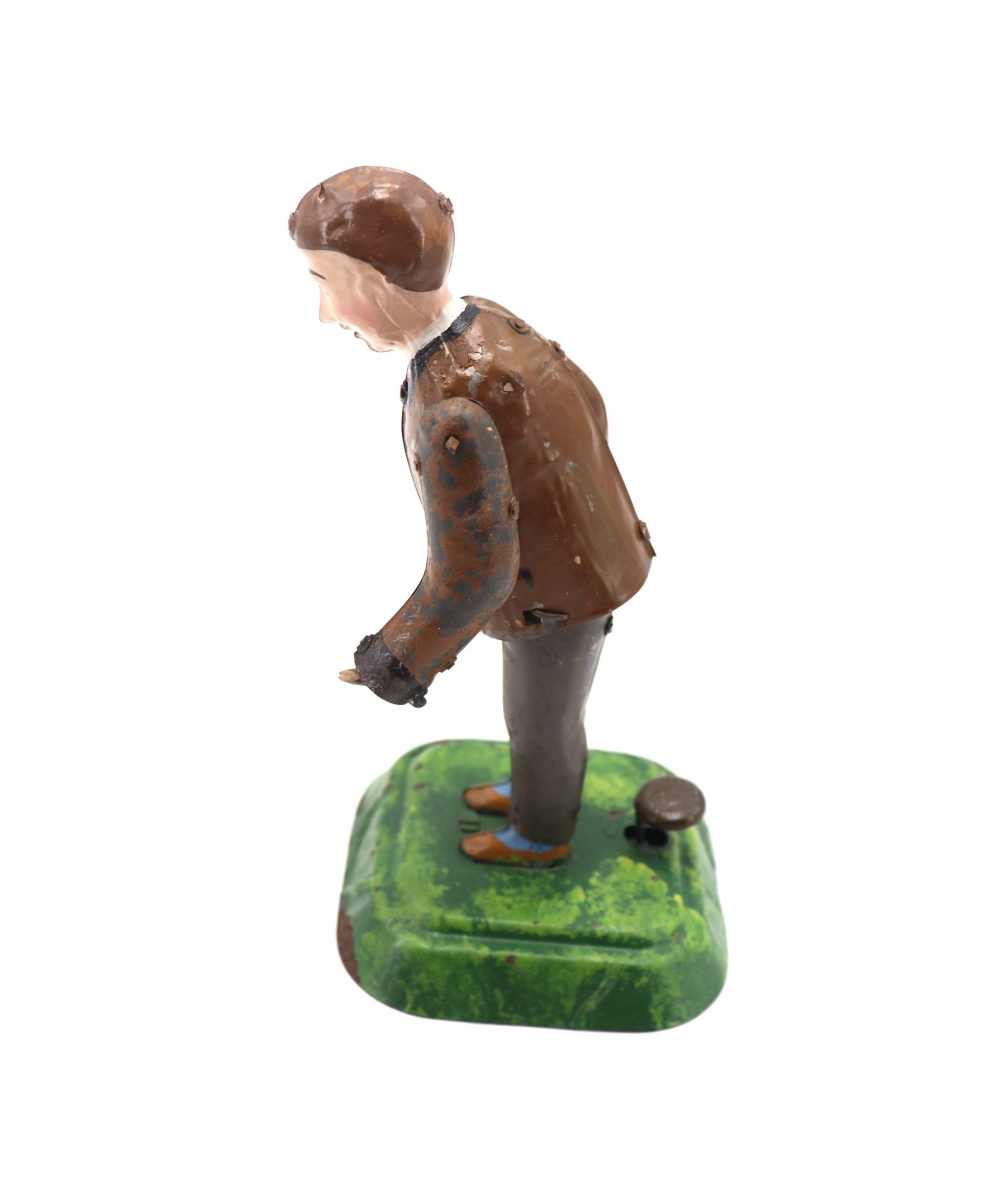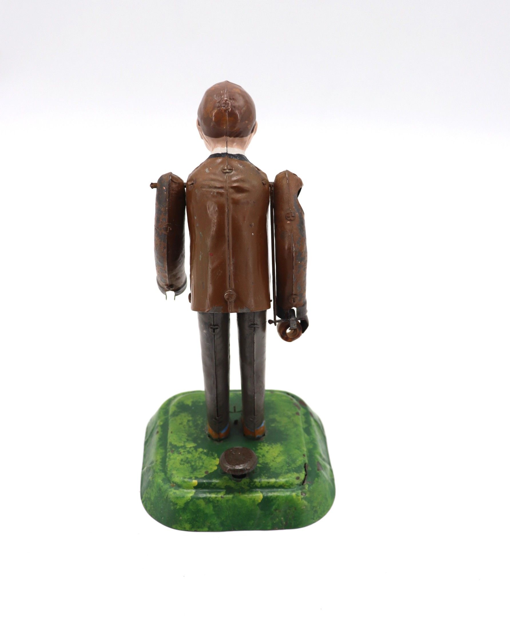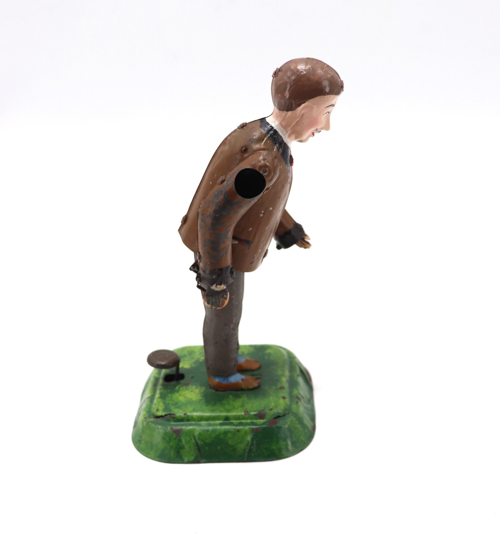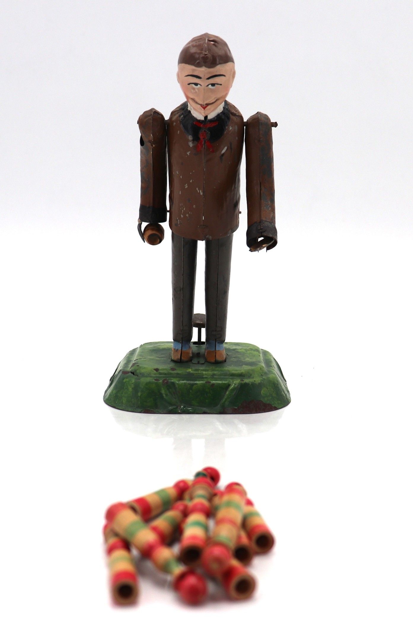 Rare toy n° 199, push-button mechanism. Works well. From 1905. Good condition (chips and missing paint). Height 22 cm.