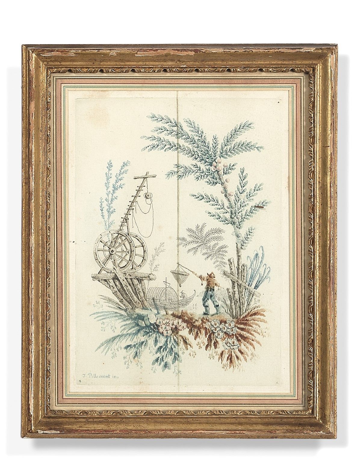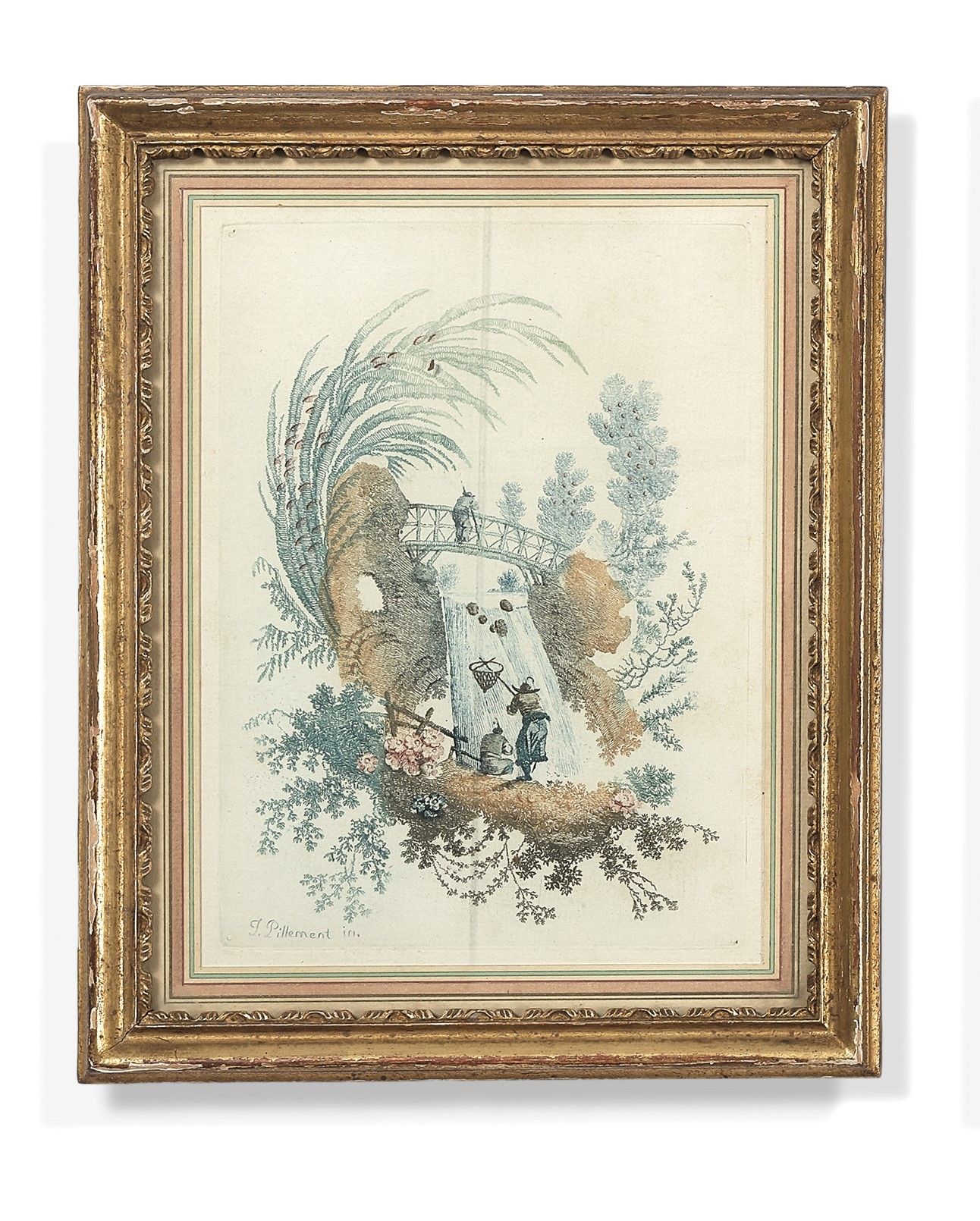 Etchings in colours. 19.5 x 13.6 cm. - Chinese children's games: two compositions. Etchings in black, slightly yellowed. 16 x 26 cm.