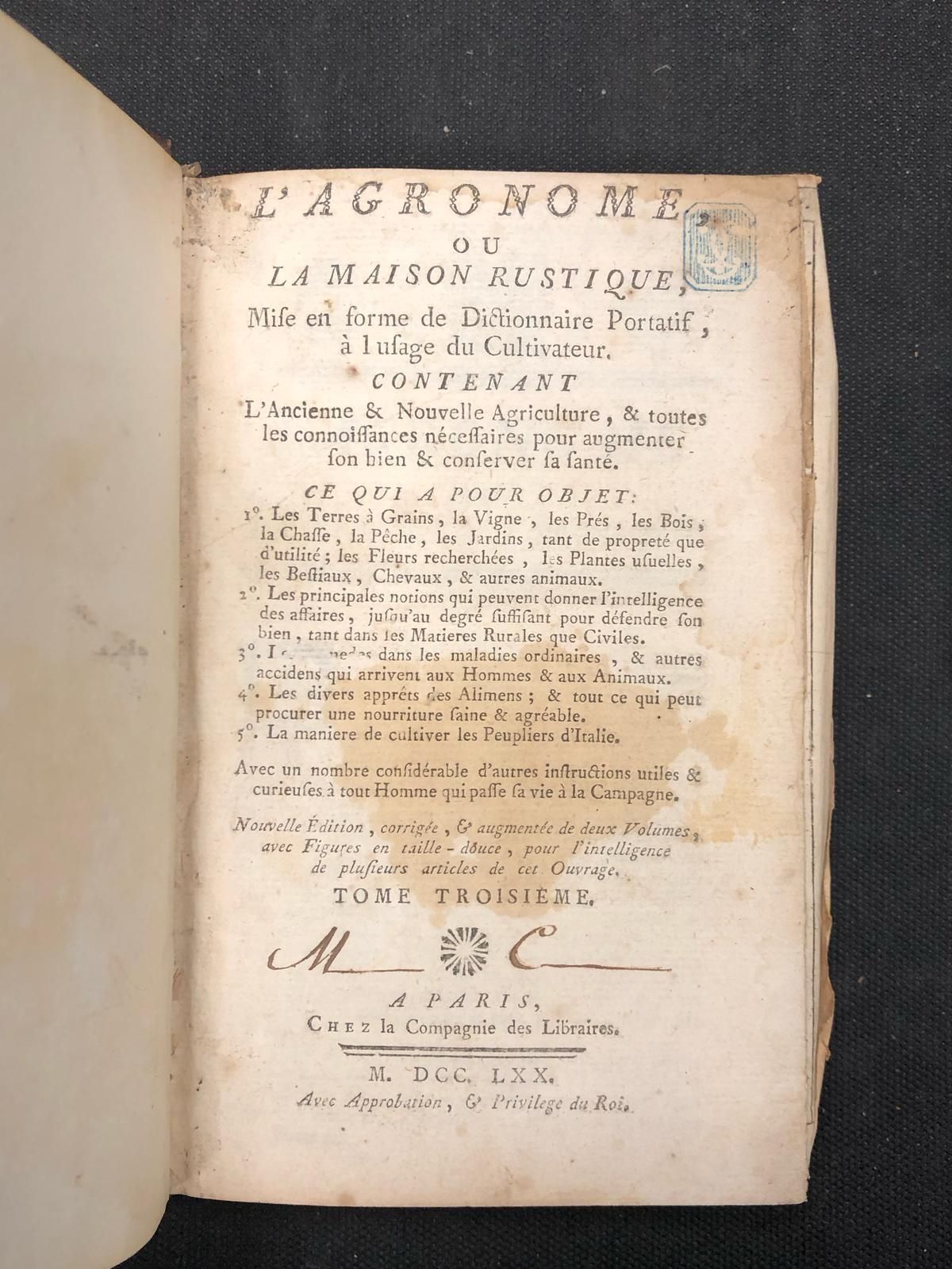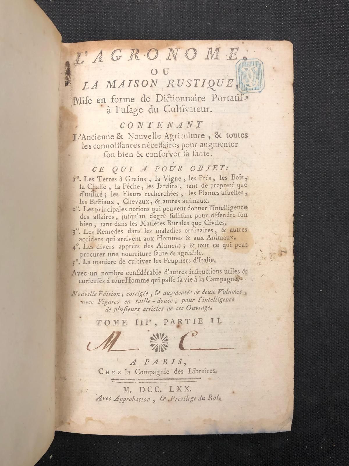 - L'agronome ou la masion rustique - T3ème 1ere et 2 ème partie - paris, compagnie des libraires, 1770 - 2 vol. in 8°, half-bassane, smooth spine, speckled tr. (rousseurs et mouillures) 6 folding plates