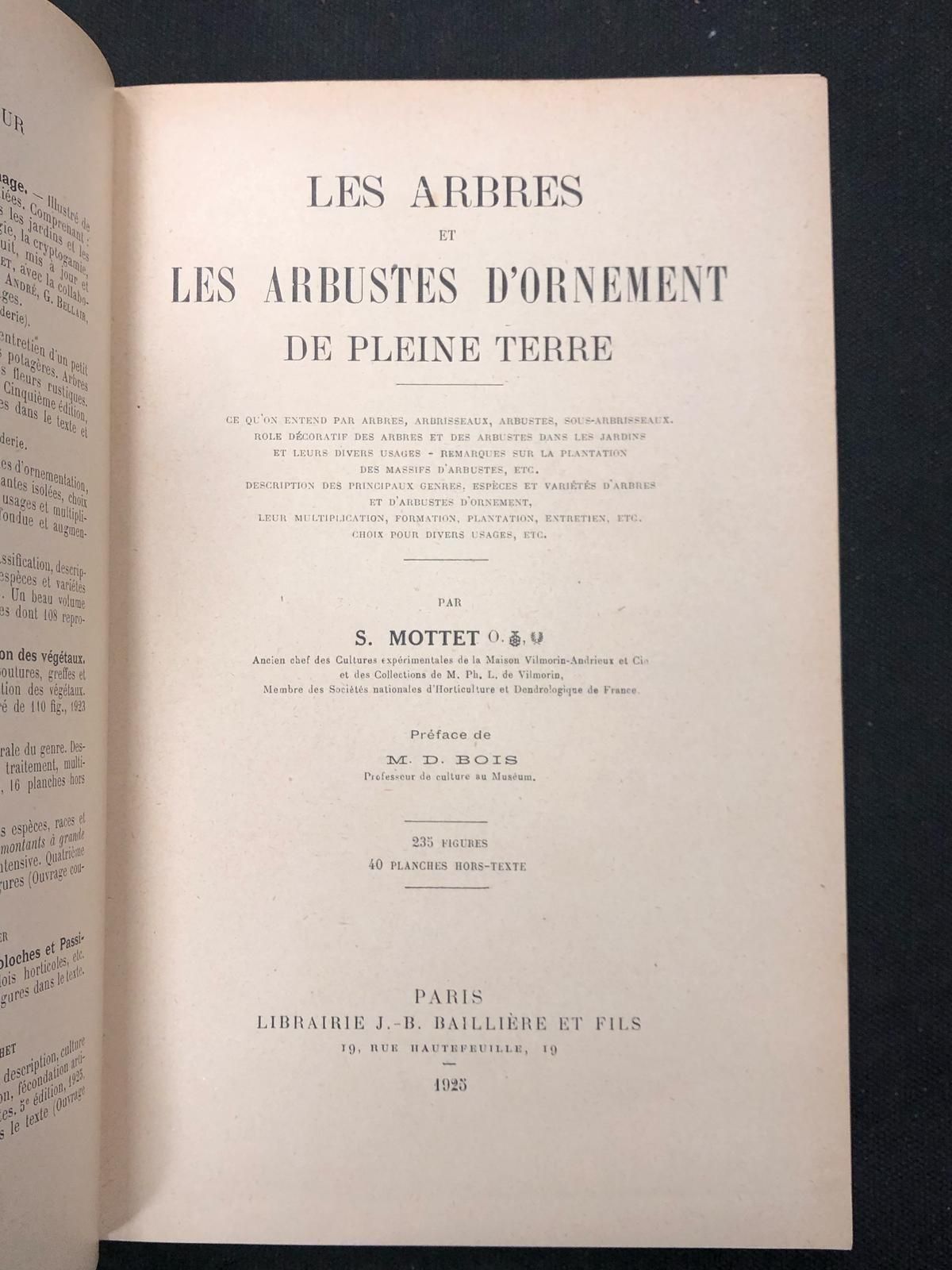 - MOTTET - Les arbres et les arbustes d'ornement de pleine terre - Paris, Baillière, 1925 - In 8°, black half cloth