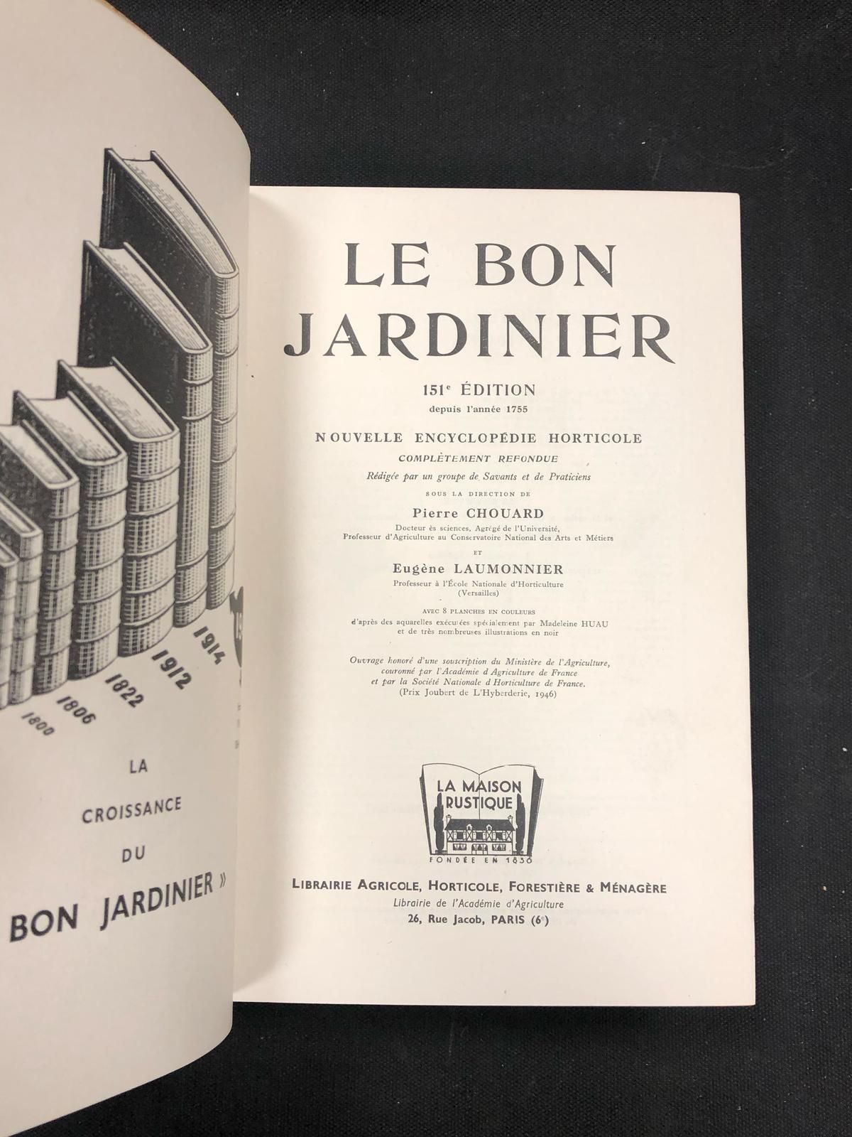 Set of books on horticulture: - CHOUARD - LAUMONNIER - Le bon jardinier - 151e édition depuis l'année 1755. Nouvelle encyclopédie horticole complètement refondue - Paris, La maison rustique, 1947 - In 4°, green half-chagrin, smooth spine - Illustrations