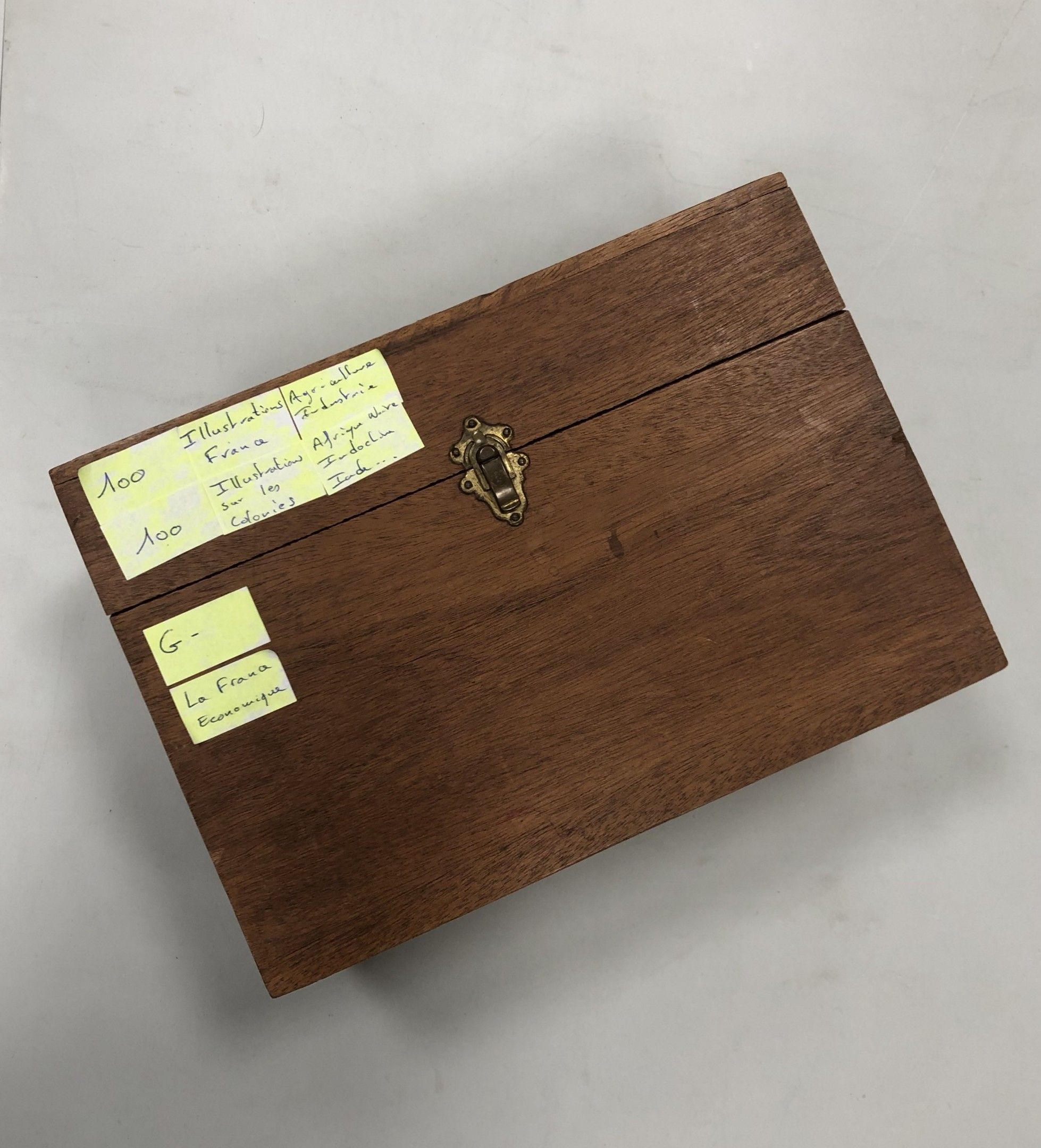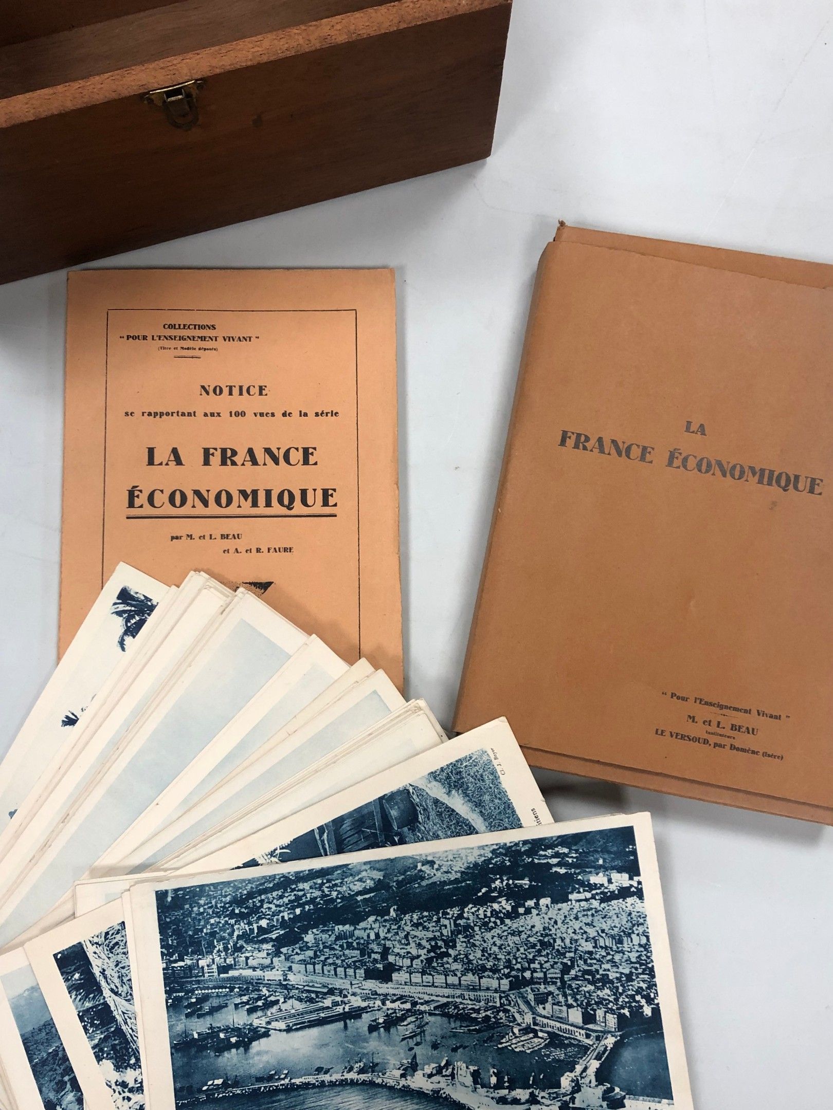 A wooden box containing : - approximately 100 photographs from the series La France Economique accompanied by the book published by "Pour l'enseignement vivant" L. Beau, Le Versoud (Isère)