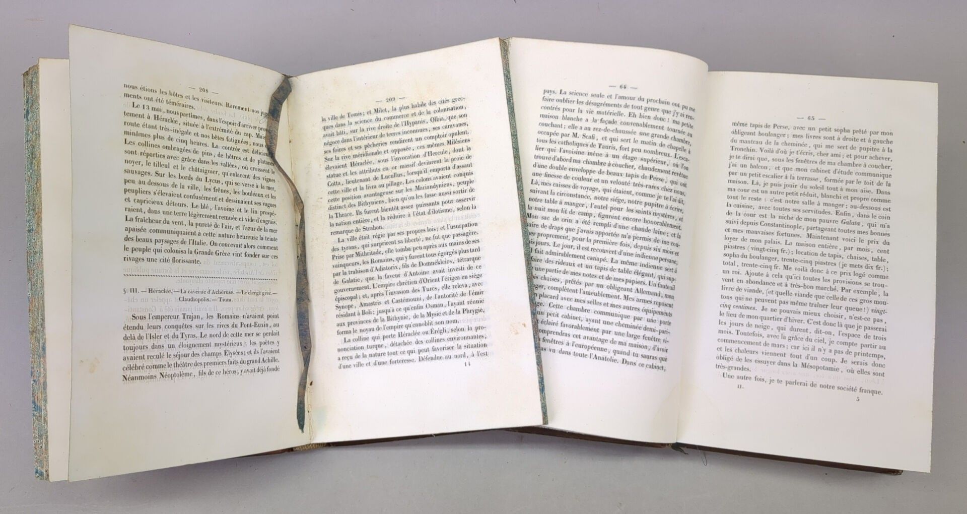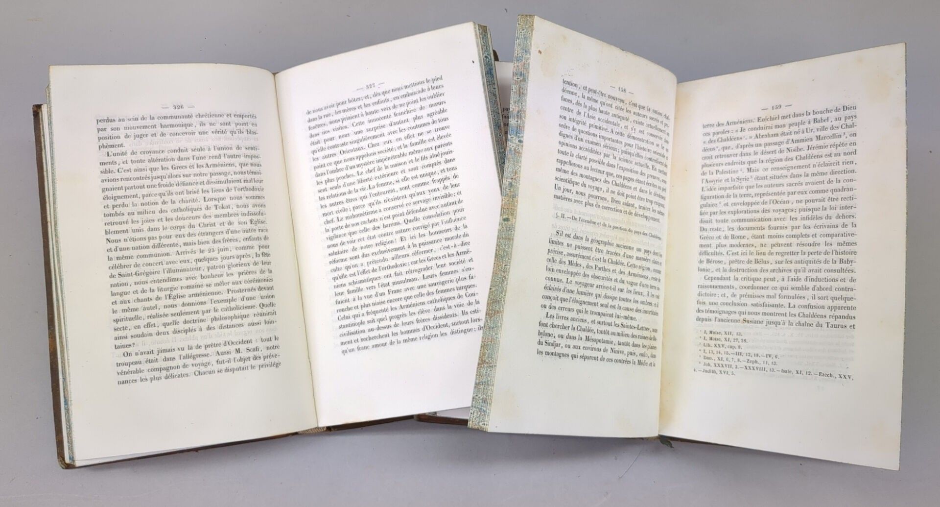 First edition illustrated with a folding map at the head of volume I. The Académie des inscriptions entrusted the French missionary and archaeologist E. Boré (1809-1878) a mission to Persia. He carried out excavations in the country and studied its monuments. He also took advantage of his stay to open a Catholic school in Shah Abbas and set up charitable works. He then taught at the Lazarist College in Constantinople, travelled to Syria and Palestine and returned to France in 1866, where he became superior of the Lazarist order until his death.