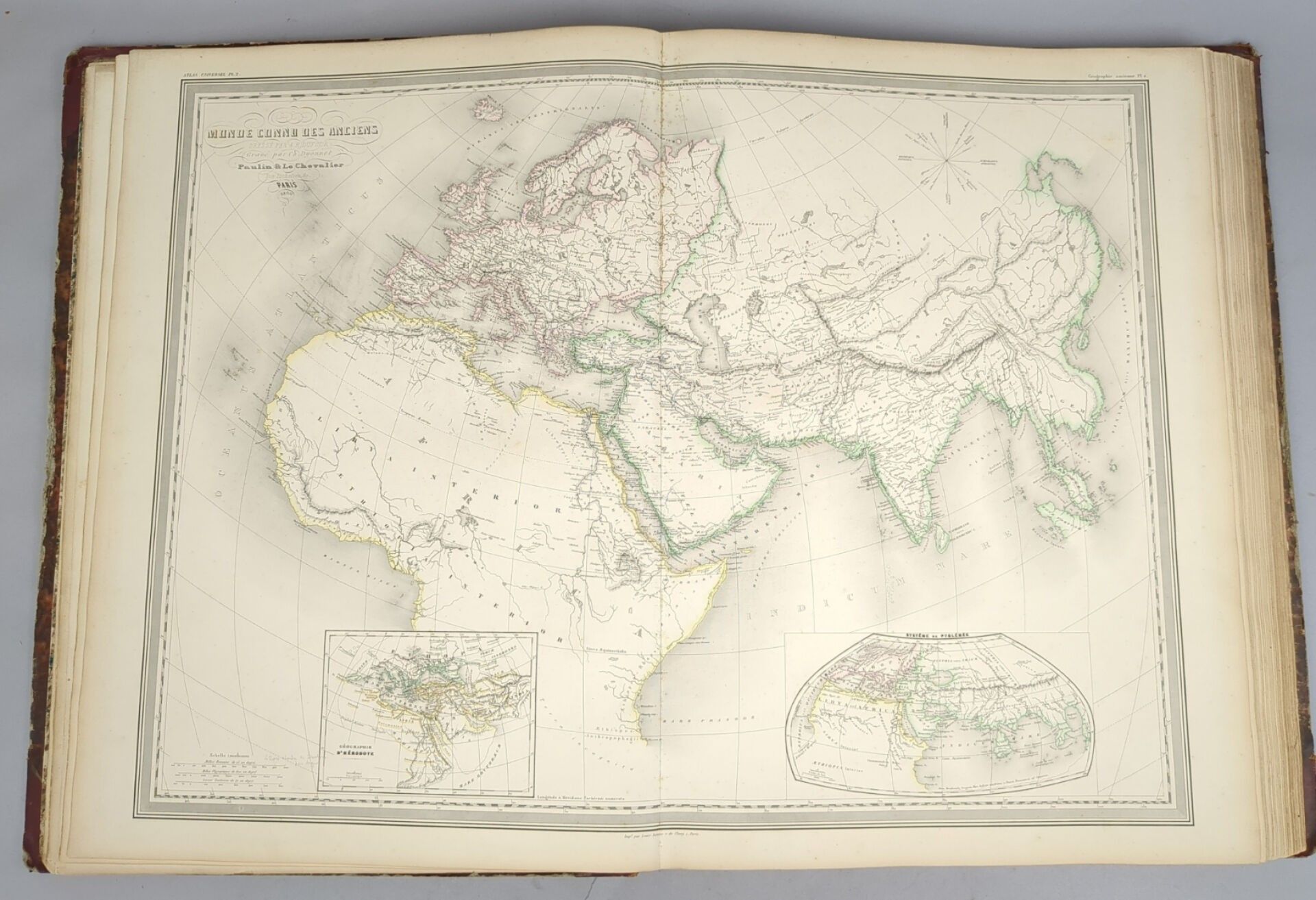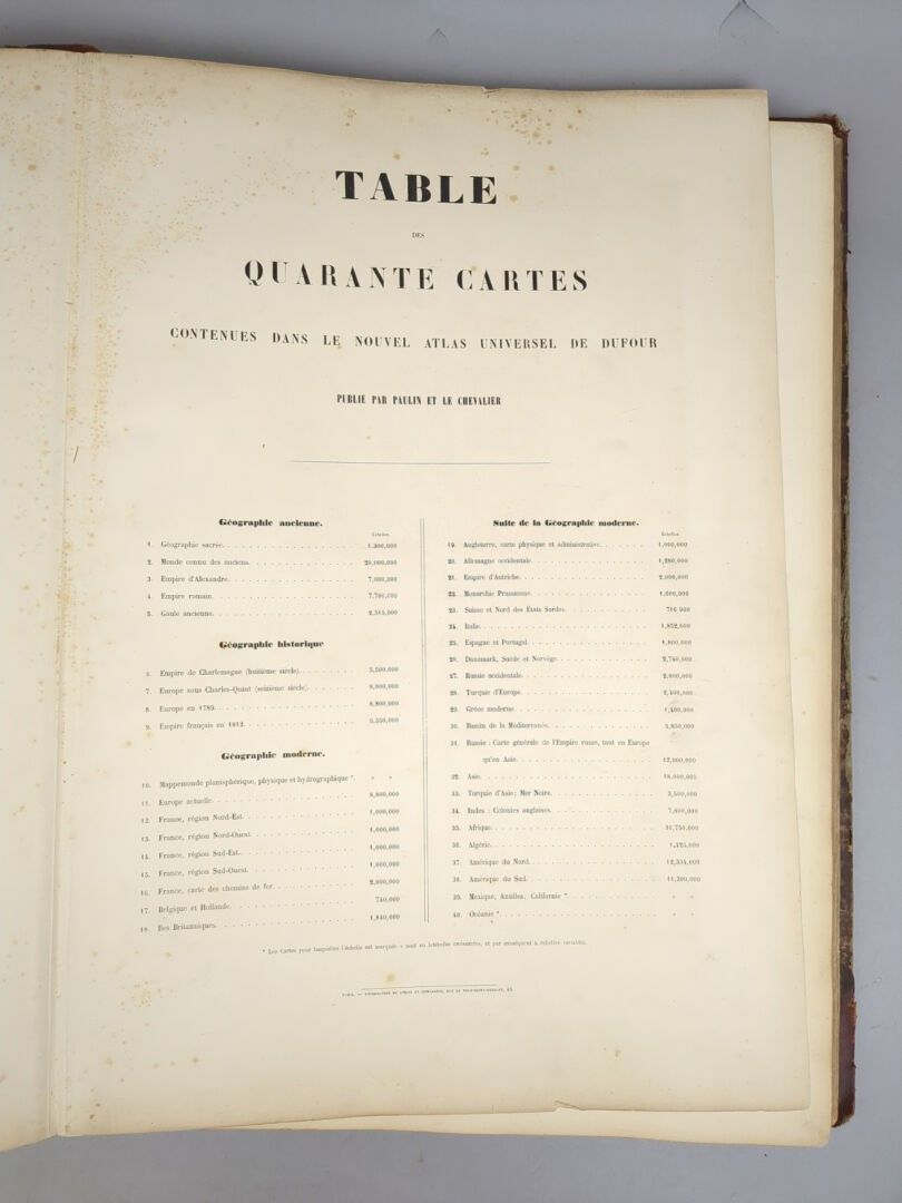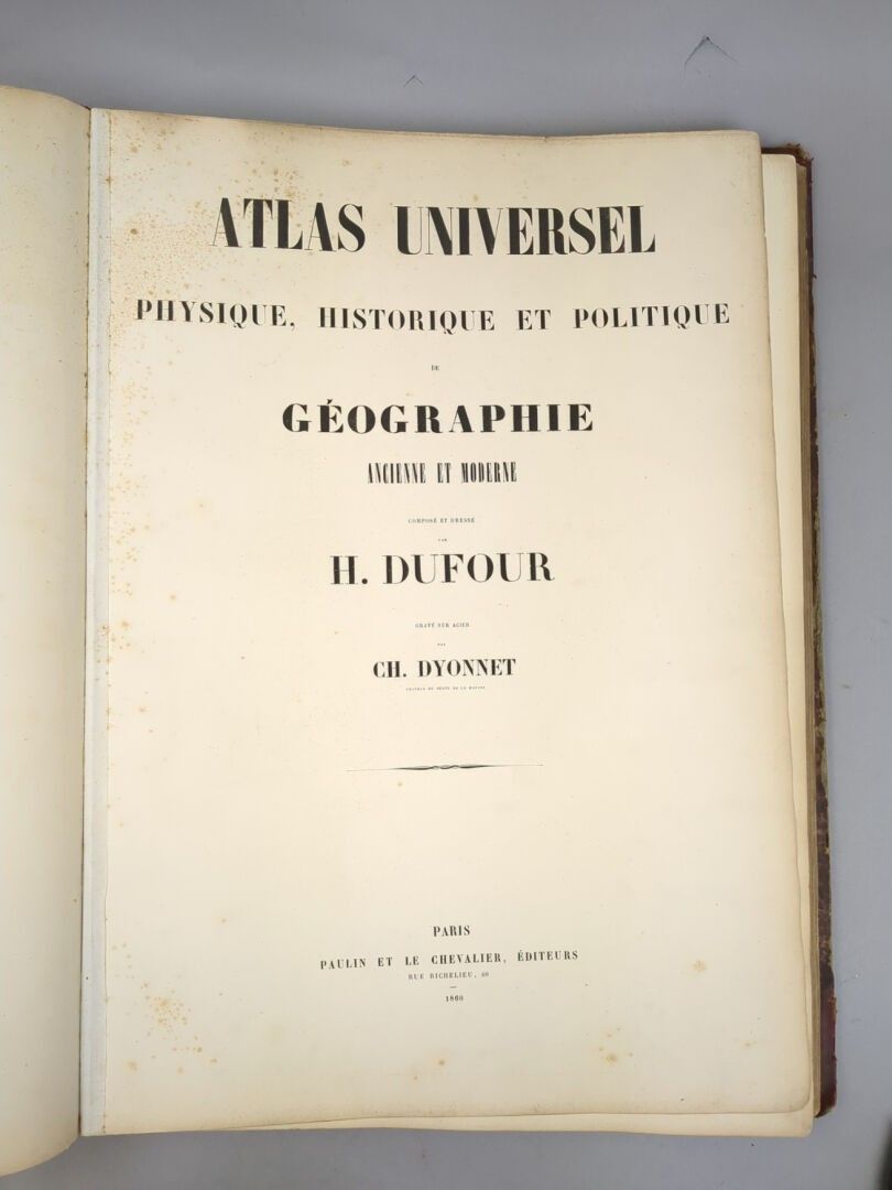 DUFOUR (Auguste-Henri). Atlas universel, physique, historique et politique de géographie ancienne et moderne. Paris, Paulin et Le Chevalier, 1860. One volume in folio, contemporary red half-chagrin. Binding worn and damaged, maps in good condition.