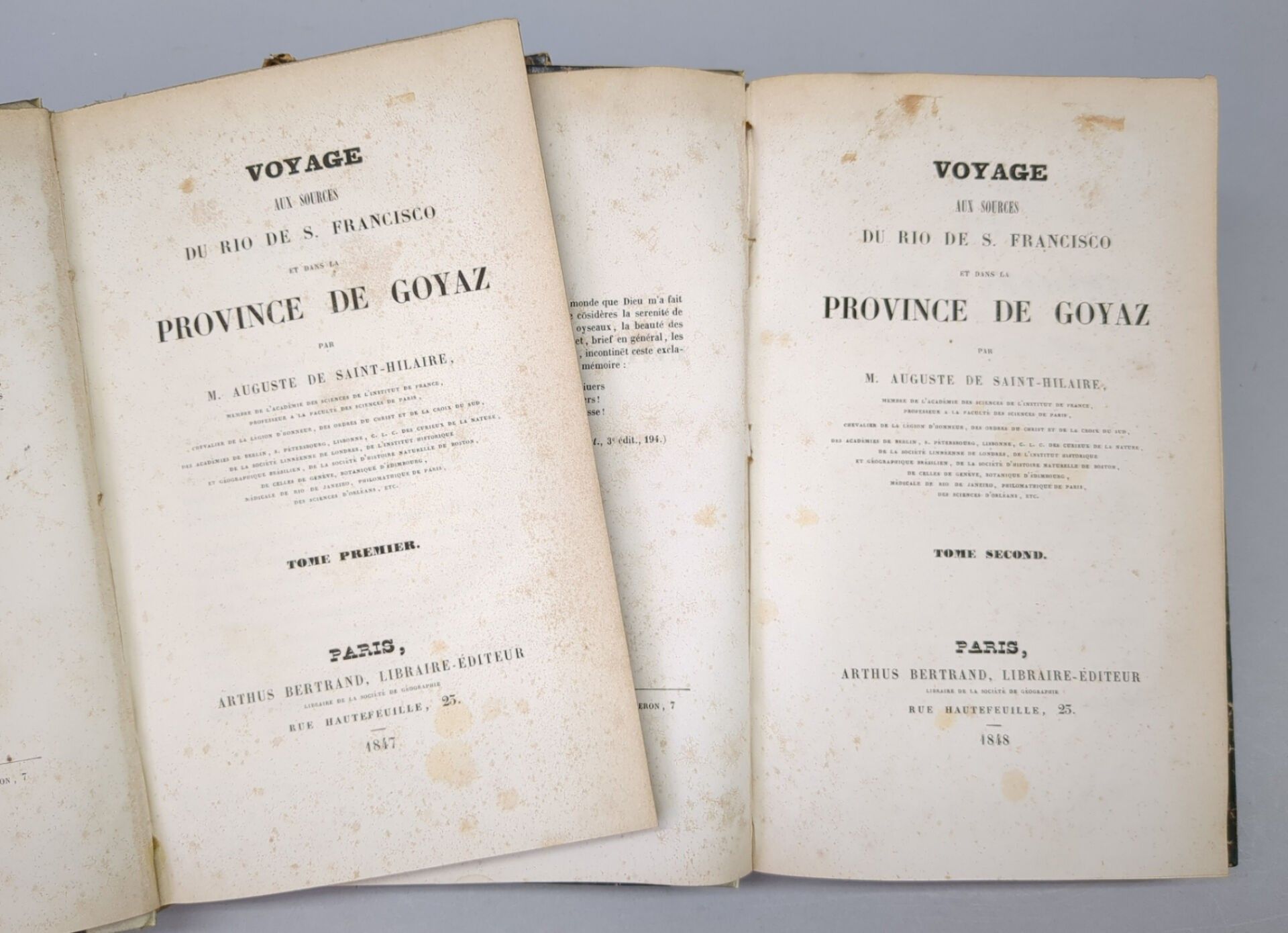 Rare first edition of the third voyage to Brazil by Auguste de Saint-Hilaire (1779-1853), French botanist and explorer. The account covers his exploration from Minas Gerais to the source of the Rio São Francisco and the province of Goiás (Goyaz).